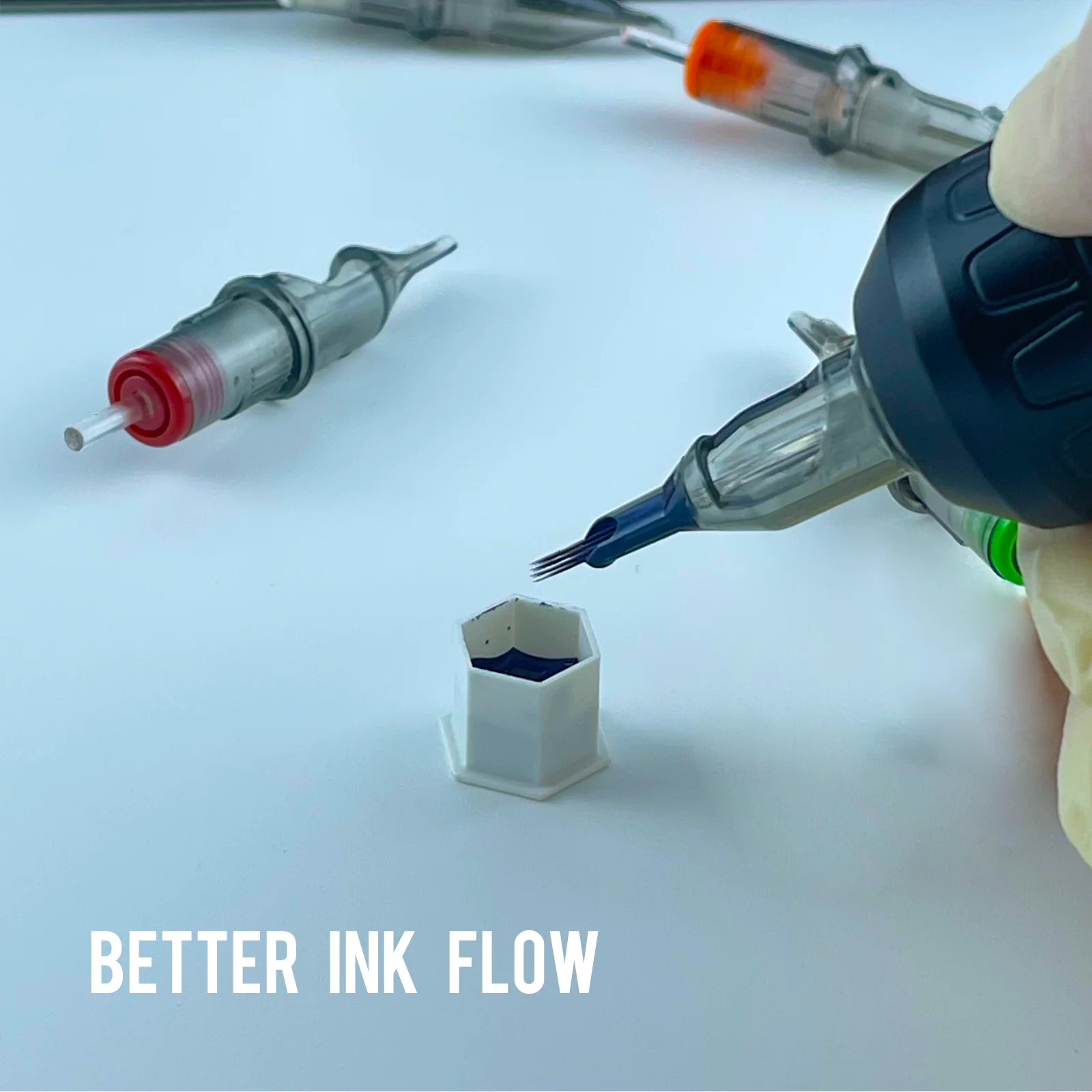 Защитная мембрана внутри системы.Светильник с прозрачными цветами-лучшая видимость.Низкопрофильный корпус и лучший поток чернил и формы внутри.Изогнутый наконечник Mag для облегчения поворота.Точно подходит для групп игл каждый раз и гладкие края устраняют дополнительные травмы.