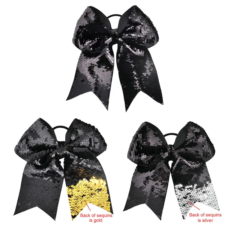 Аксессуары для волос для девочек и девочек, эластичные резинки с большими двусторонними блестками и весом, 8 дюймов, с бантом, для конского хвоста
