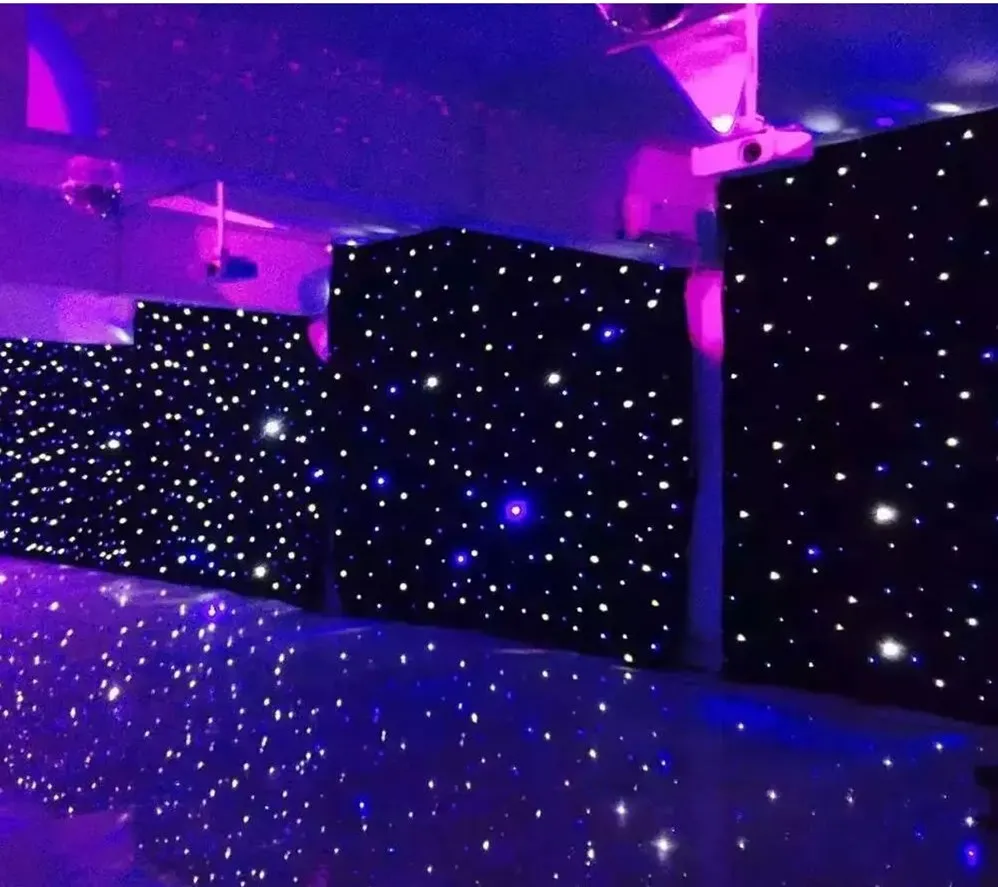 Светодиодная Звездная ткань с системой управления DMX широко используется в живом шоу, праздничные вечерние, свадебные банкеты, праздничные праздники. В основном используется в большом, среднем и маленьком фоновом режиме, КТВ и свадьбе и т. д.