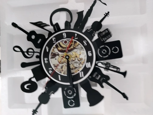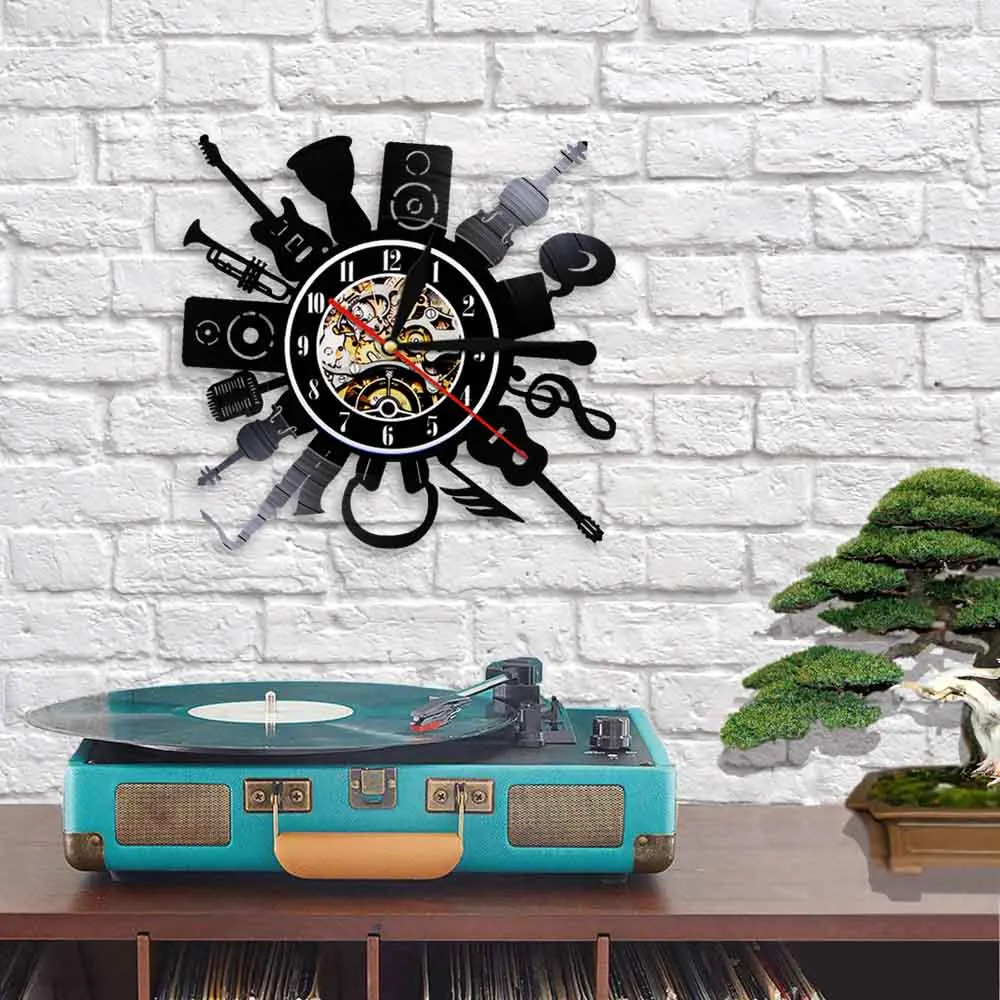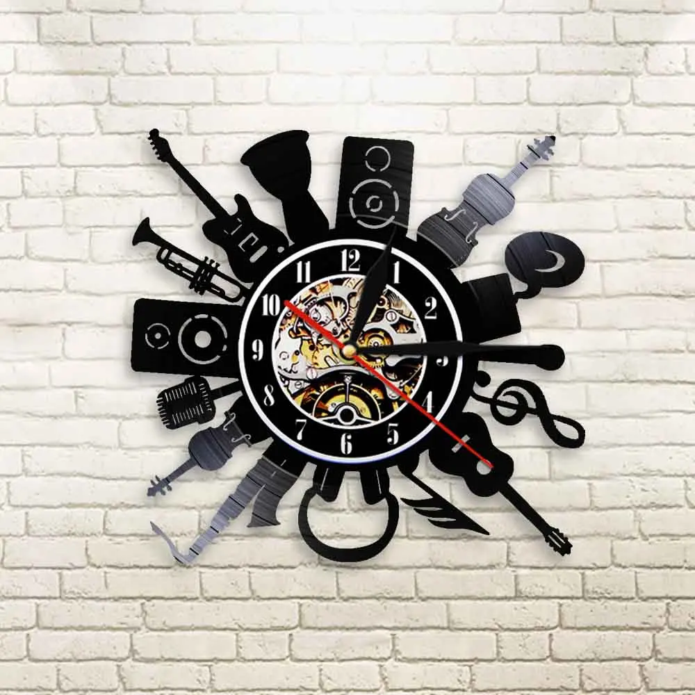 Музыкальные ремешки инструменты тема настенные часы виниловая запись Музыка Звук гитара труба тихий подметание часы граммофон музыка запись часы
