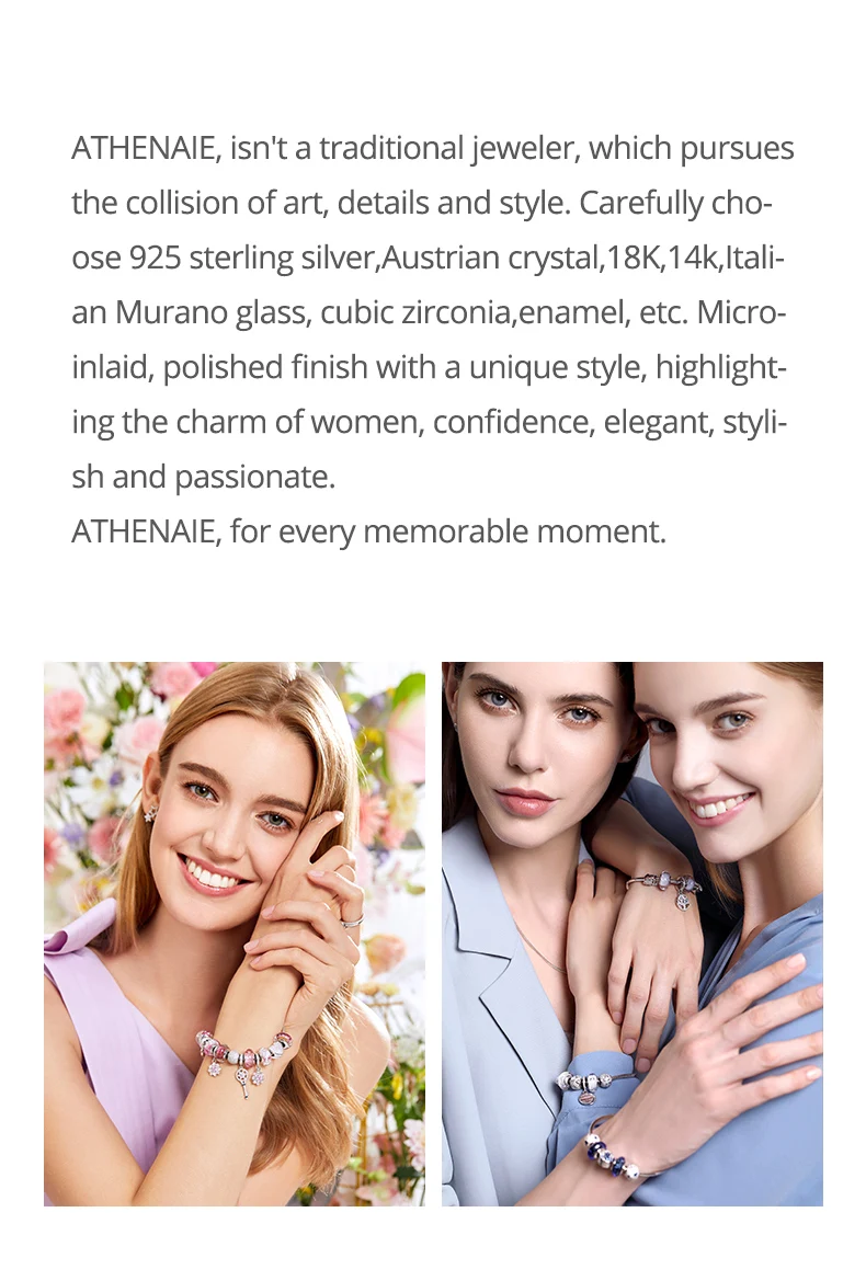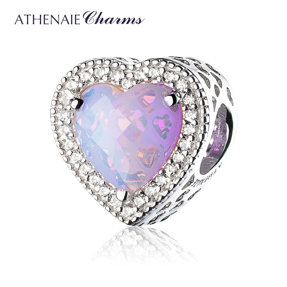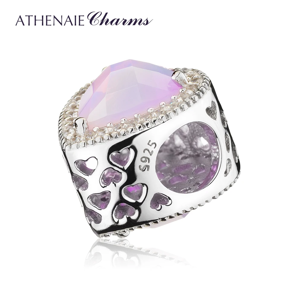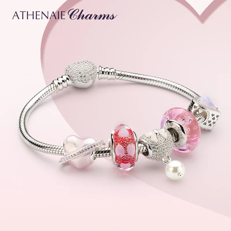 ATHENAIE 925 стерлингового серебра Сияющие шармы в виде сердец бусы, браслеты розовый кристалл и ясно CZ Fit Браслеты для женщин на Рождество