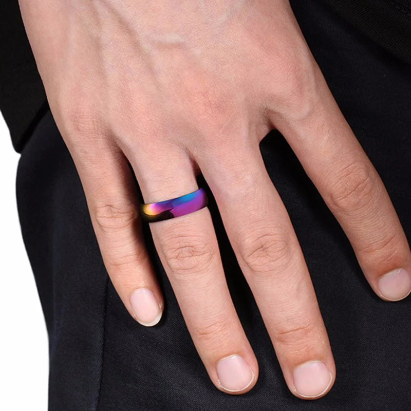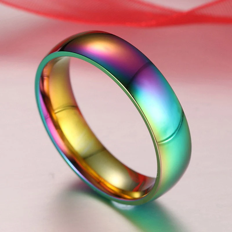 Кольцо из нержавеющей стали 6 мм с яркими бликами, гладкое Радужное...