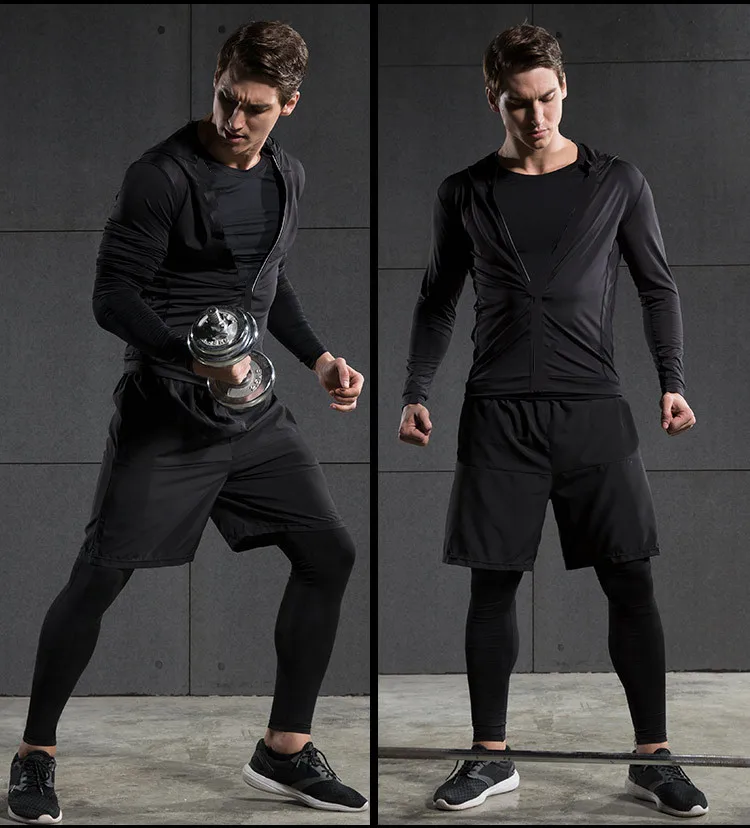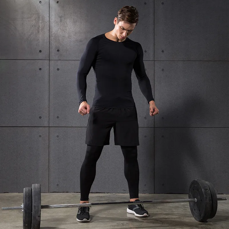 2017 зимние уличные быстросохнущие комплекты для бега мужские Компрессионные спортивные костюмы для бега баскетбольные колготки одежда спортивная одежда для тренажерного зала и фитнеса