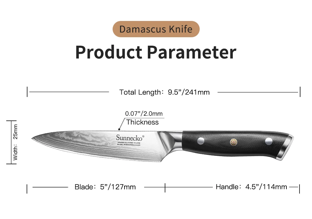 Универсальный нож SUNNECKO, 5 дюймов, дамасская сталь, VG10, острое лезвие, прочная твердость, кухонные ножи, Ручка G10, инструмент для резки шеф-повара