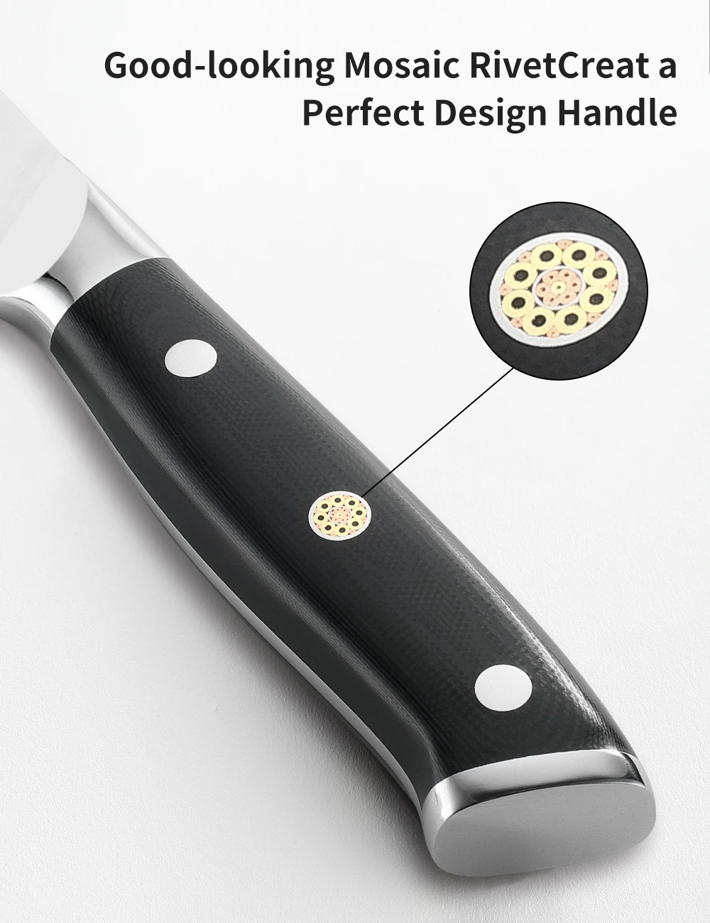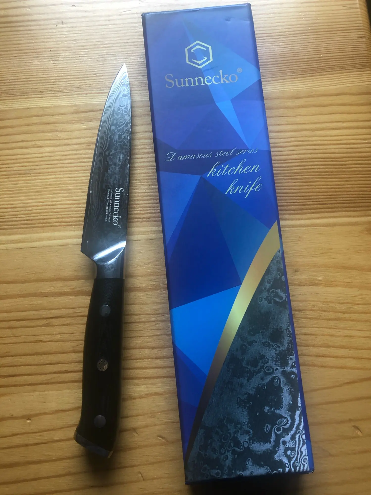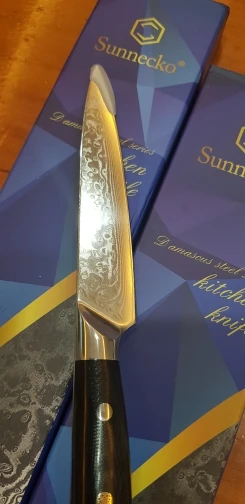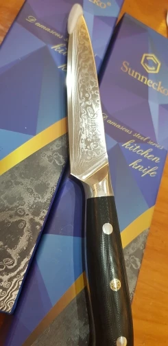 Брали ножи парой. Этот универсальный и шеф. Ножи великолепные. Исполнение без изъянов, заточка очень-очень острая. Думаю и держаться будет долго. Упаковка тоже классная. Такие ножи можно и в подарок. Отправлен и доставлен курьером быстро!
