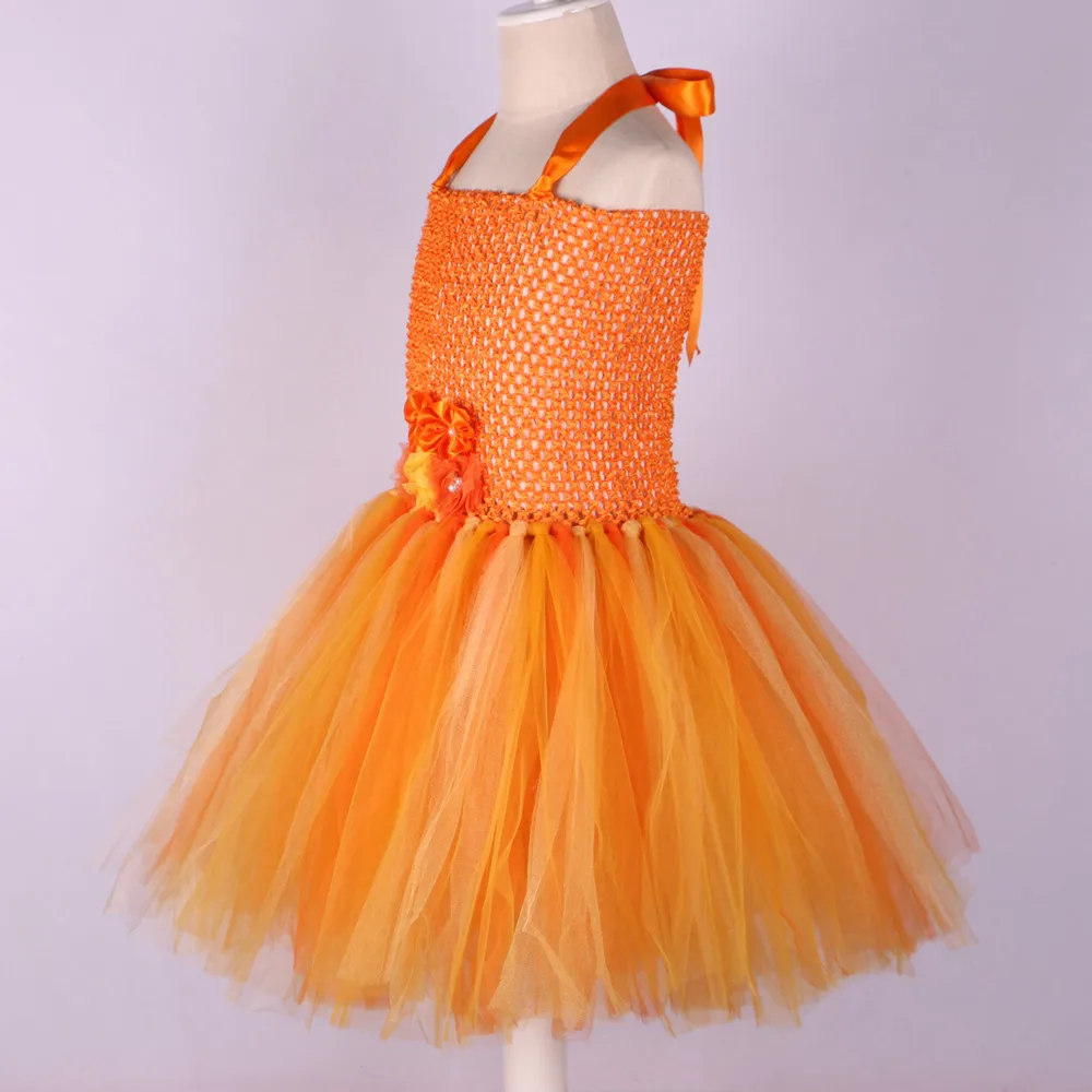 Оранжевый золото платье-пачка с цветочным рисунком для девочек, платье принцессы для девочек; Детское платье для дня рождения, вечерние платья для детей с рисунком тыквы для Хэллоуина Костюм От 1 до 14 лет