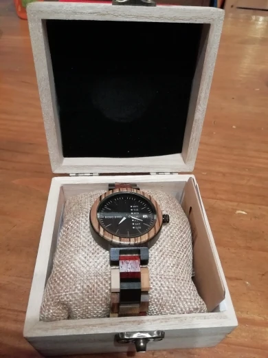 Как на изображениях часов. Очень легкий. Написано на часах, спине и коробках, по моему запросу. Это красиво.