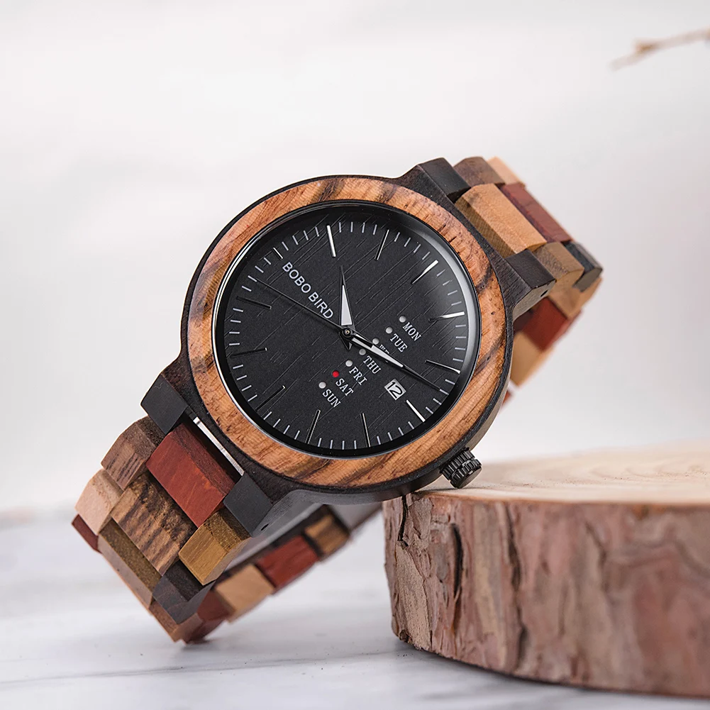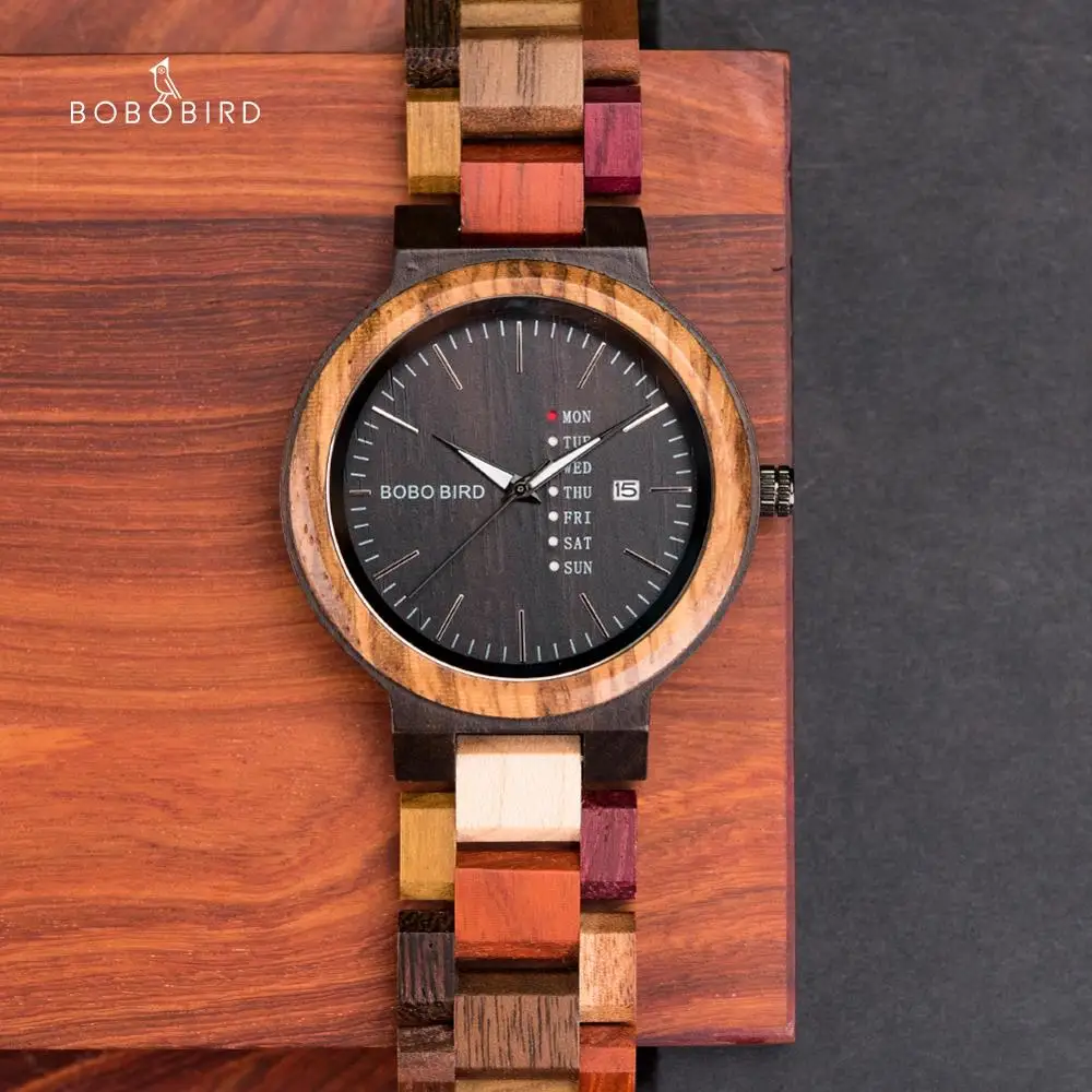 BOBO BIRD парные часы люксовый бренд деревянные часы Неделя Дата дисплей Кварцевые часы для мужчин женщин мужчин отличный подарок Прямая поставка OEM
