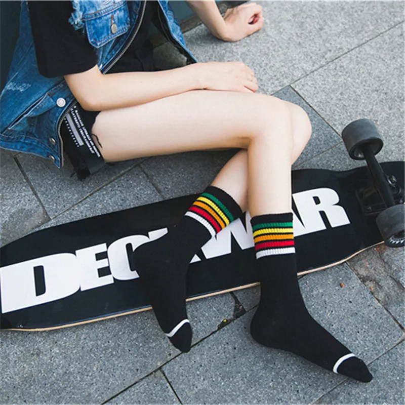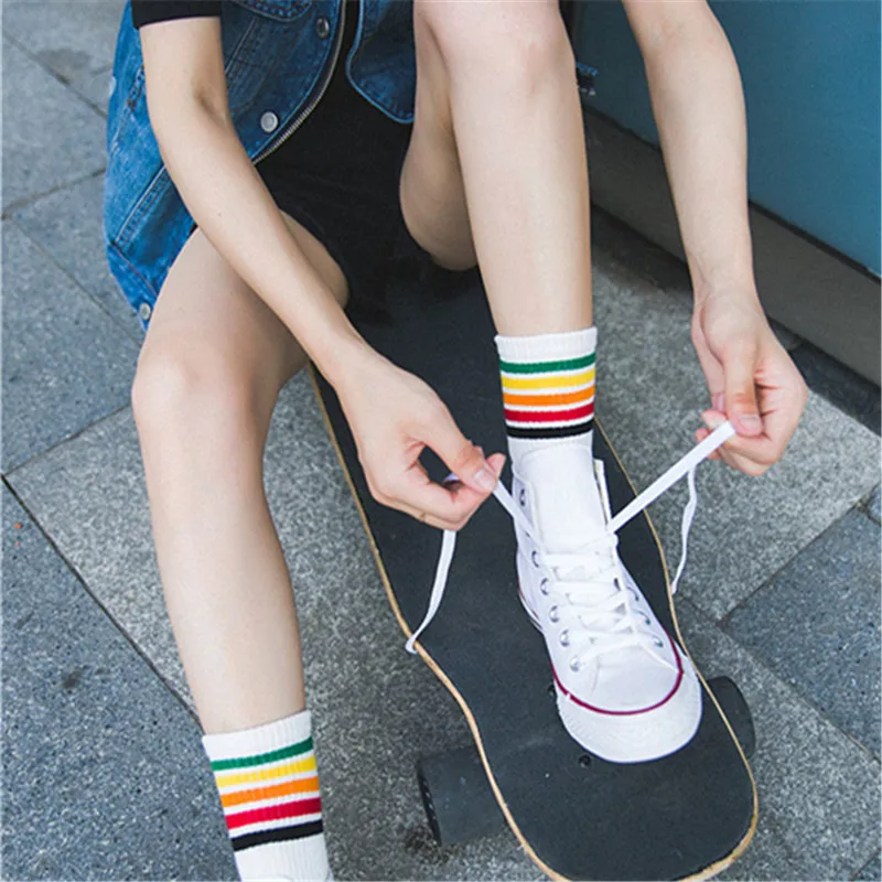 Носки унисекс, хлопковые, полосатые, в радужную полоску, для осени