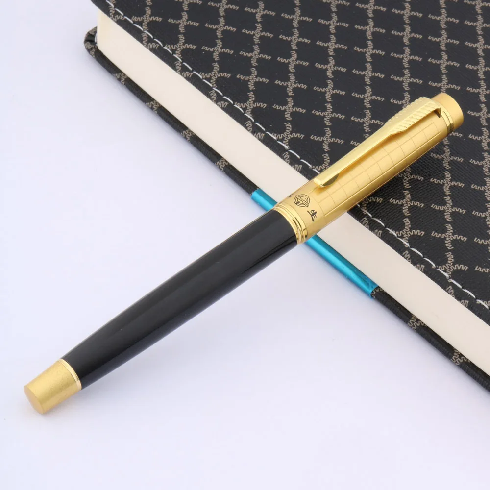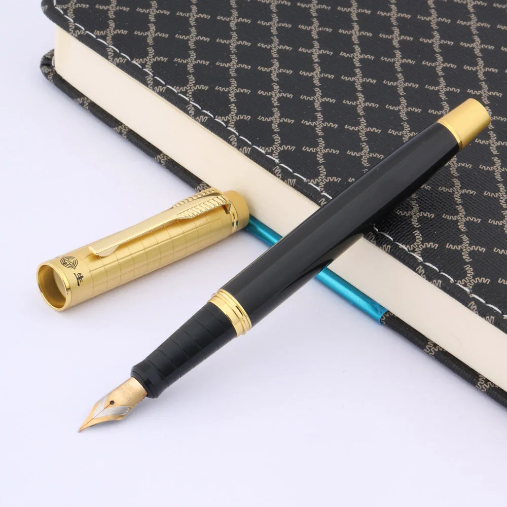 Роскошная металлическая перьевая ручка 223 со средним иридиевым пером, золотой и черный, деловая решетка, модные канцелярские принадлежности, офисные и школьные принадлежности