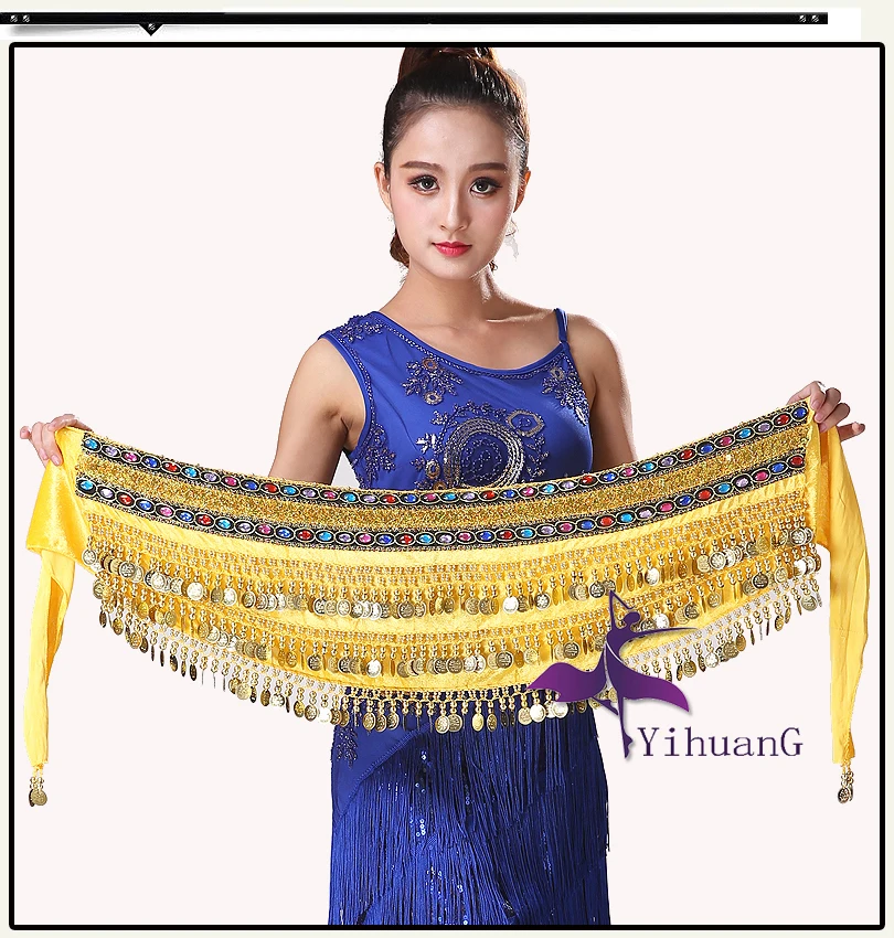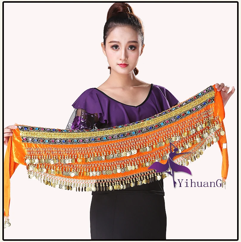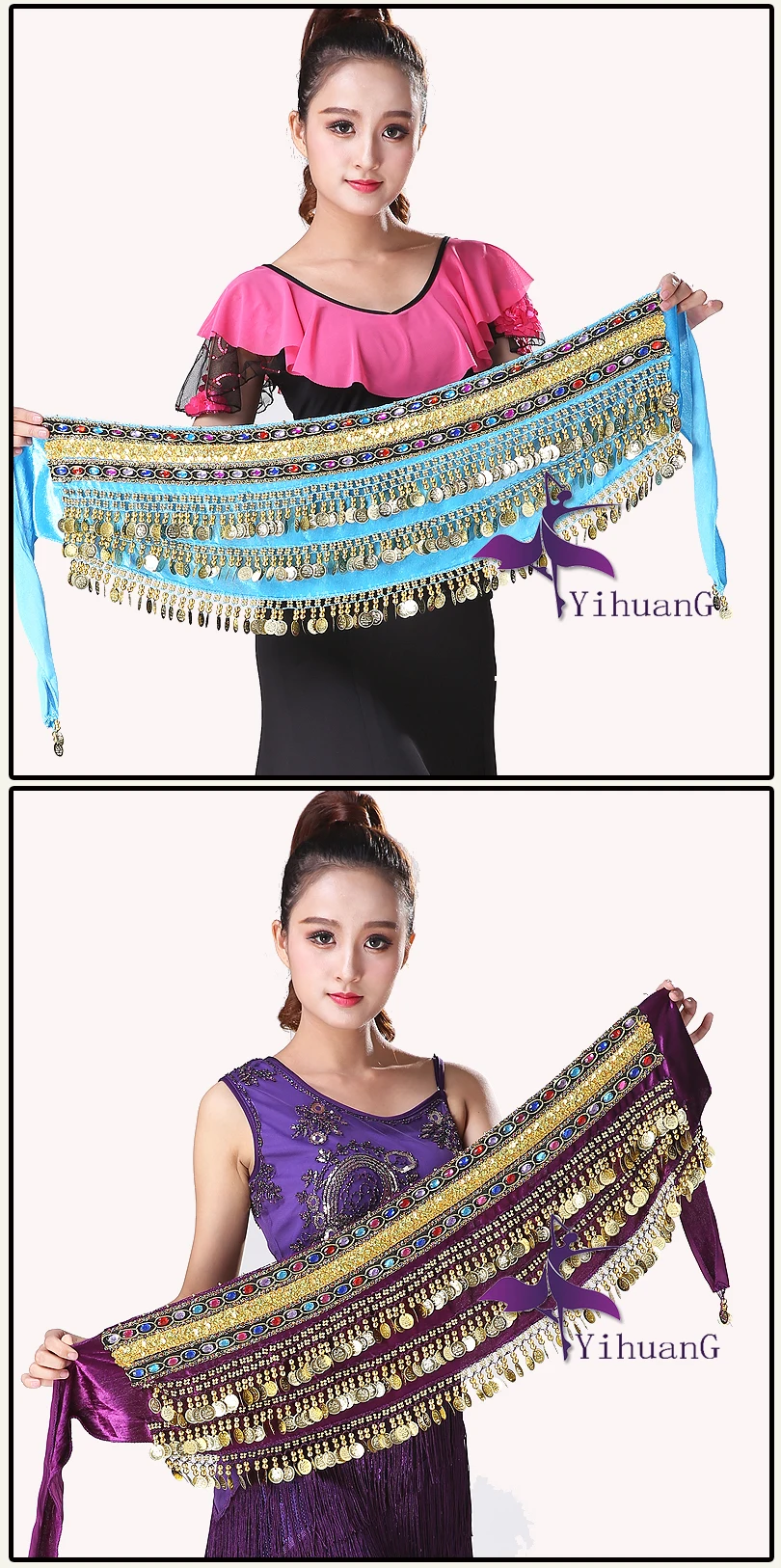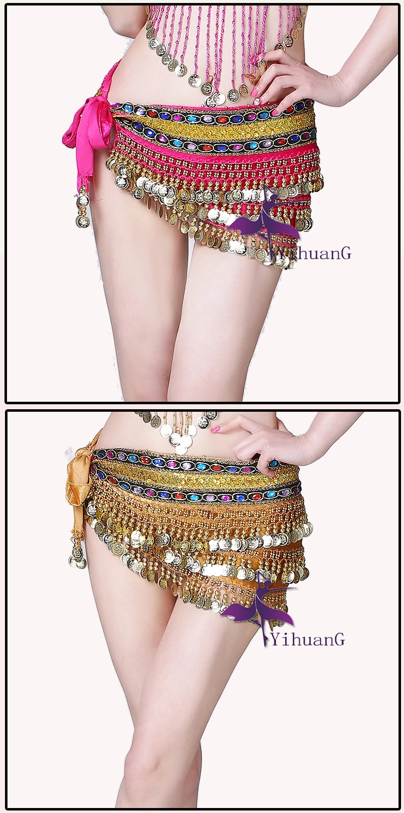 Платок набедренный для танца живота, 11 цветов, с 3 рядами монет