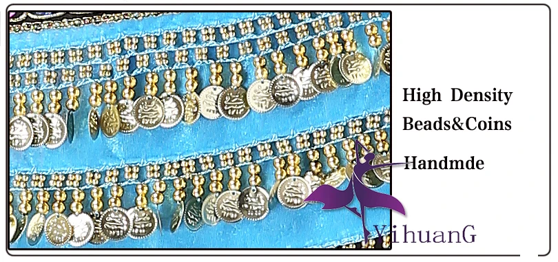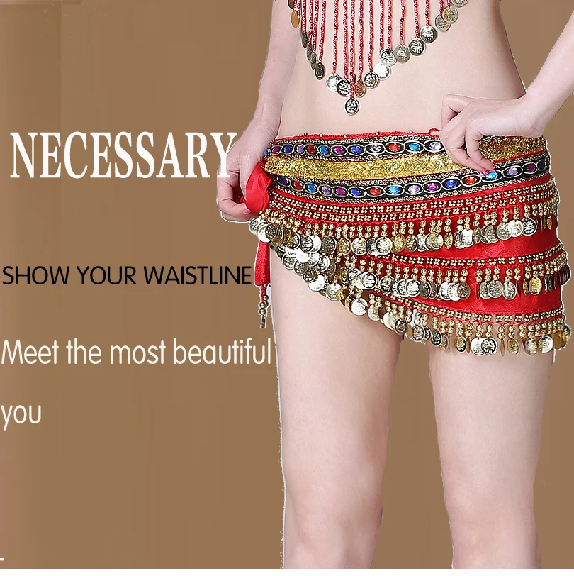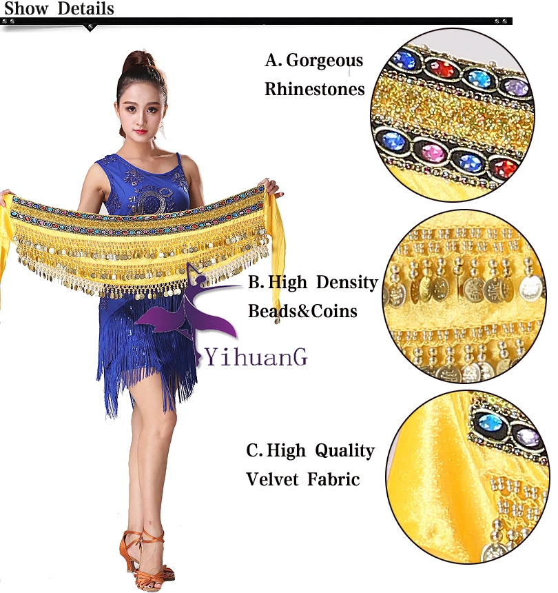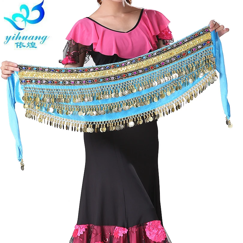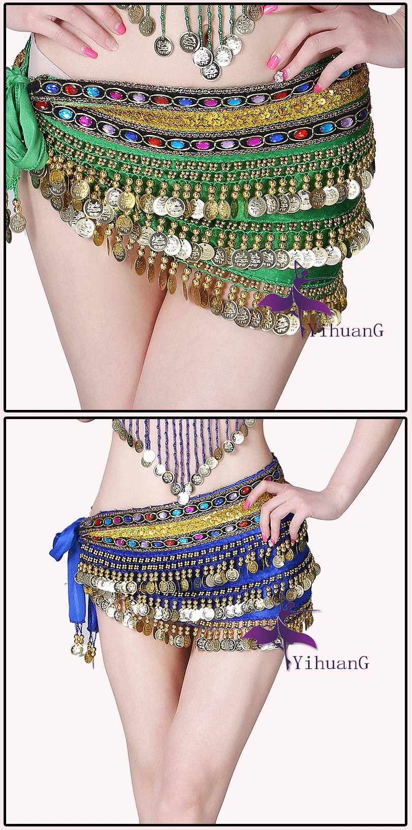 Платок набедренный для танца живота, 11 цветов, с 3 рядами монет
