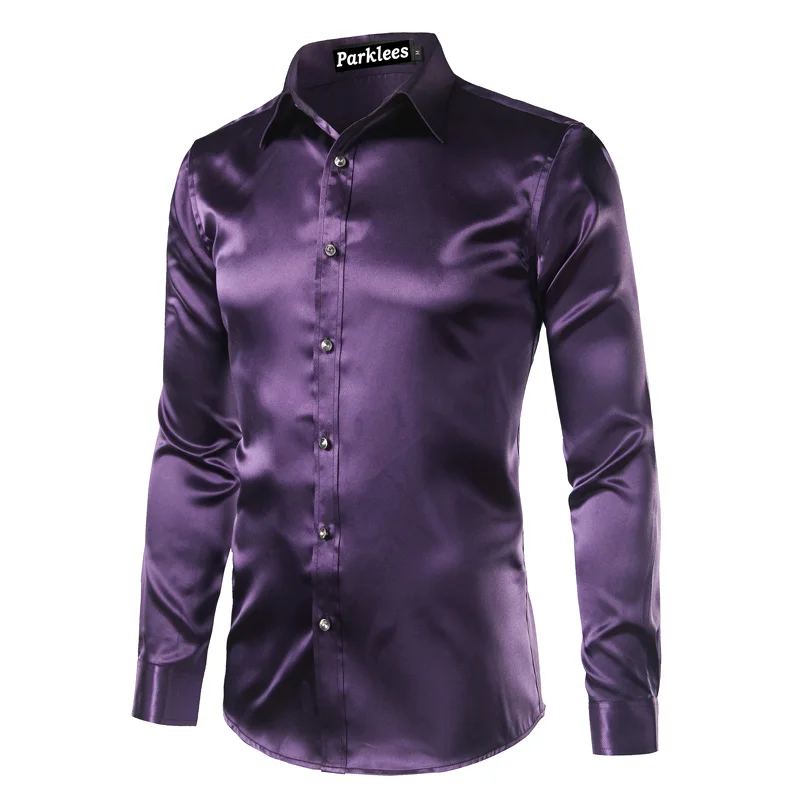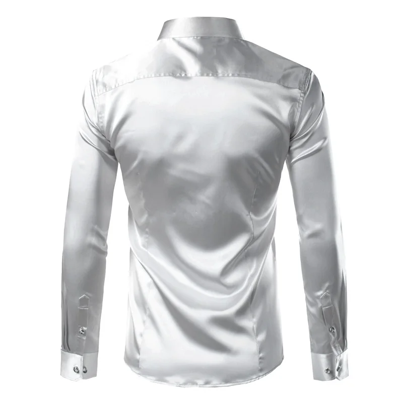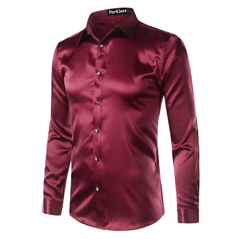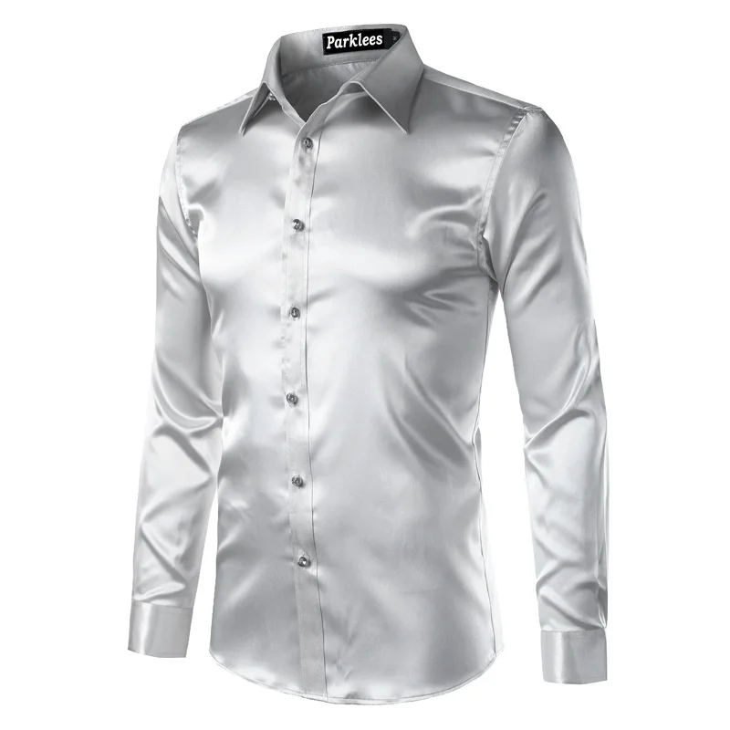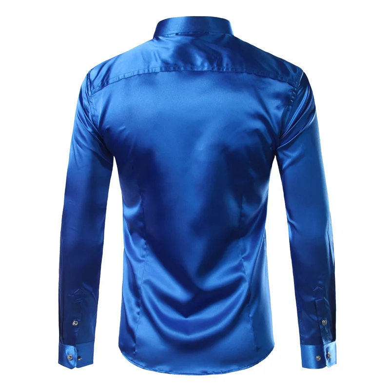 Высококачественная шелковая атласная рубашка для мужчин Chemise Homme 2022 Повседневная приталенная Мужская рубашка с длинным рукавом деловая Свадебная мужская рубашка