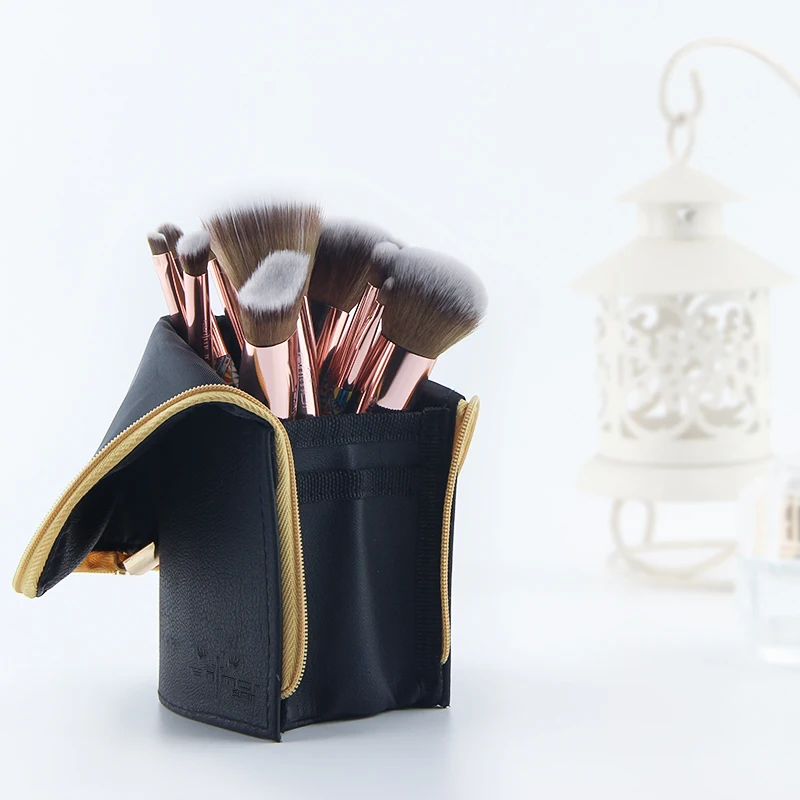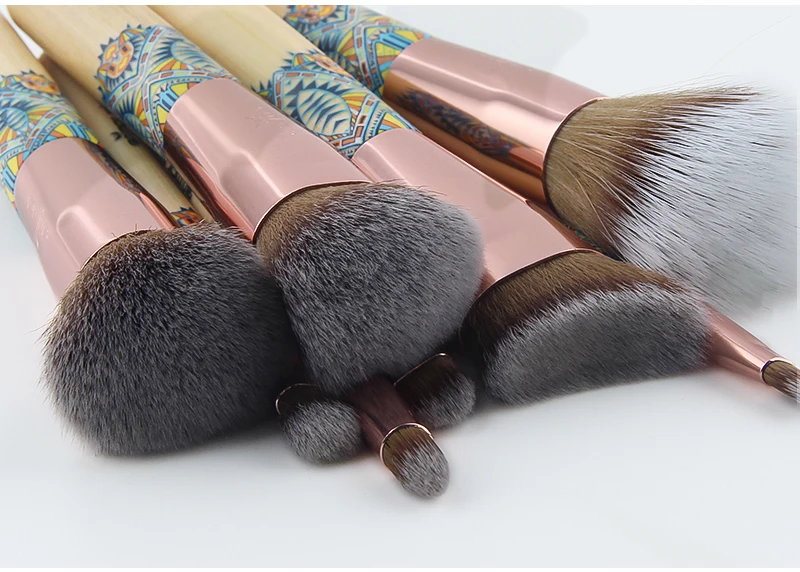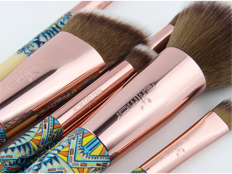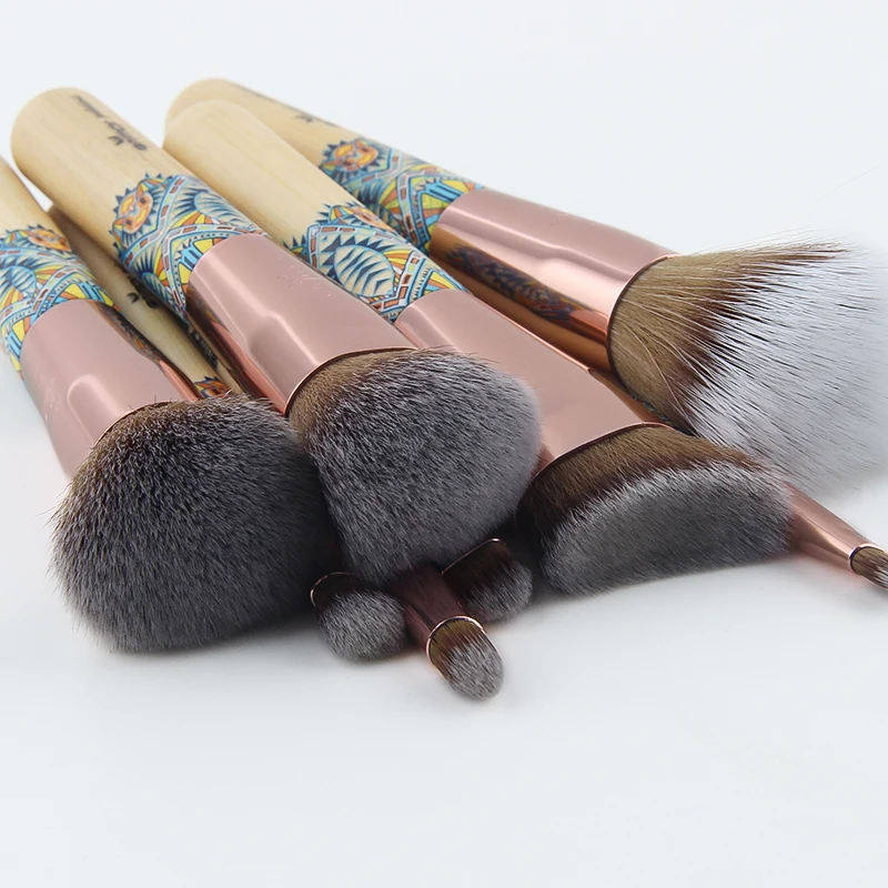 Makeup Brushes ColorBrown Hair , rose gold ferrule and bamboo handle