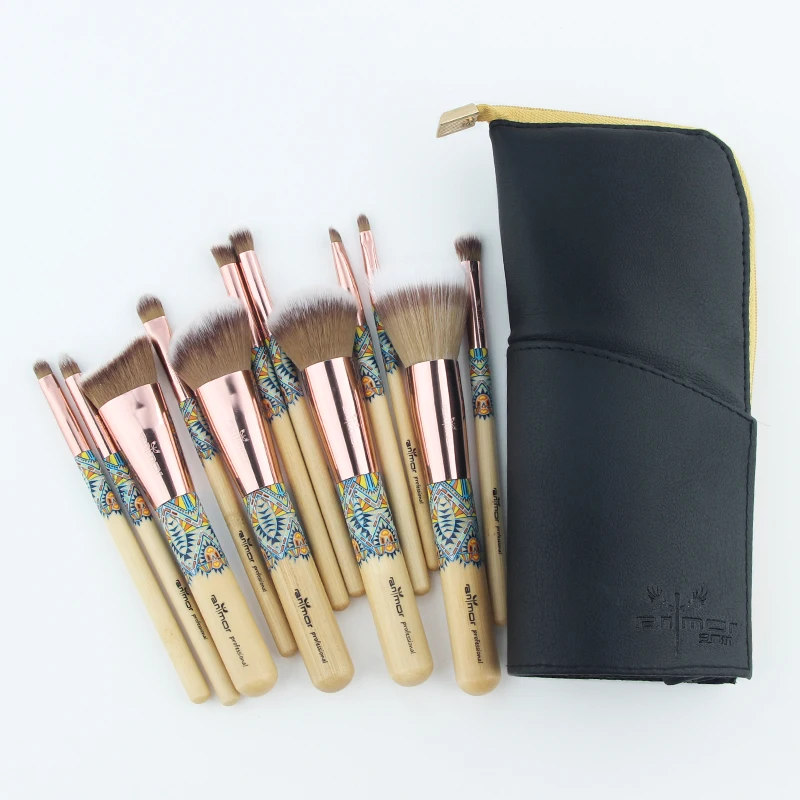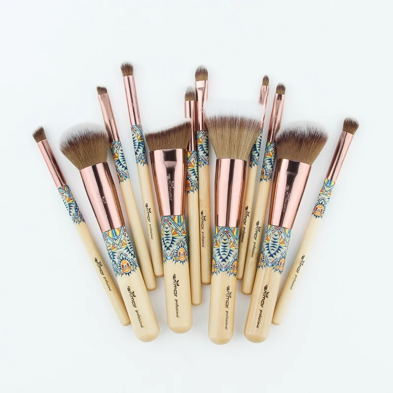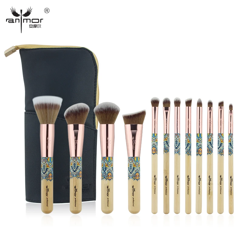Набор бамбуковых профессиональных кистей для макияжа Anmor, 12 шт., для основы, теней, консилера, Кисть для макияжа, косметический набор