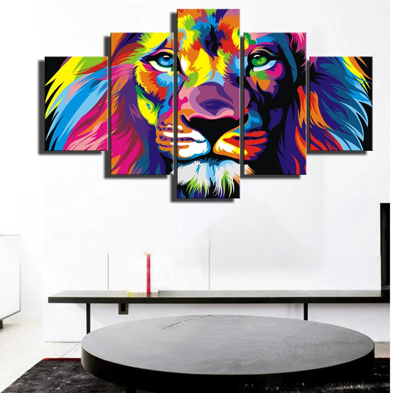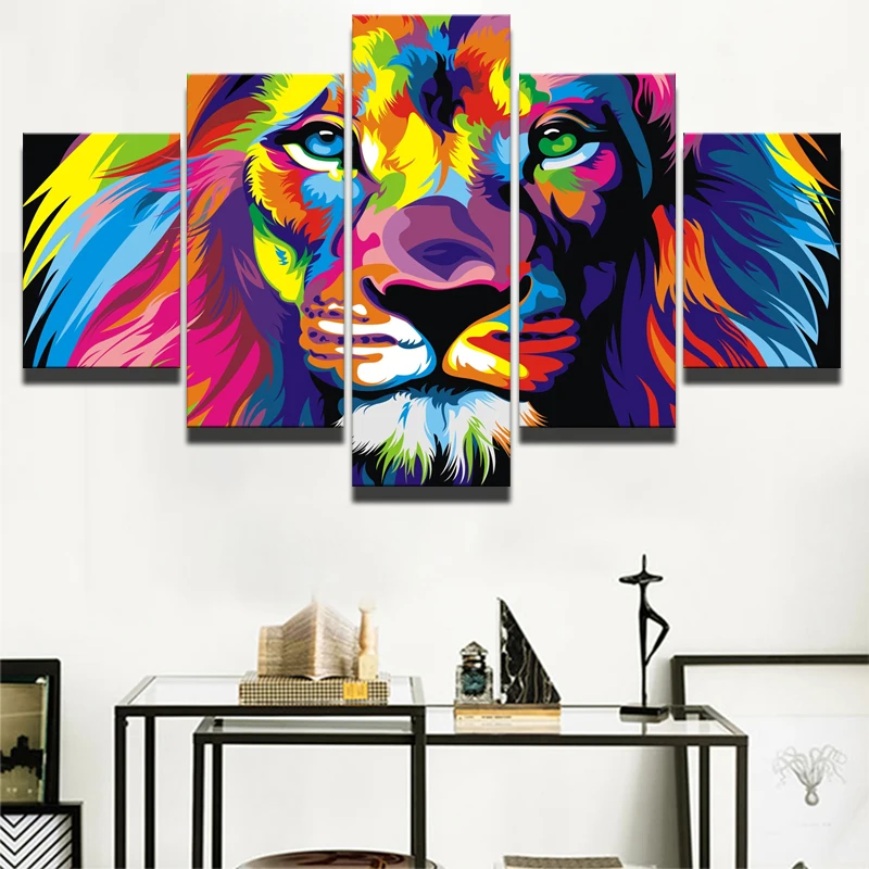 Акварельные Лев, модульные картины для гостиной, стены большого размера, поп, Лев, животные, стены, фотообои для детской комнаты