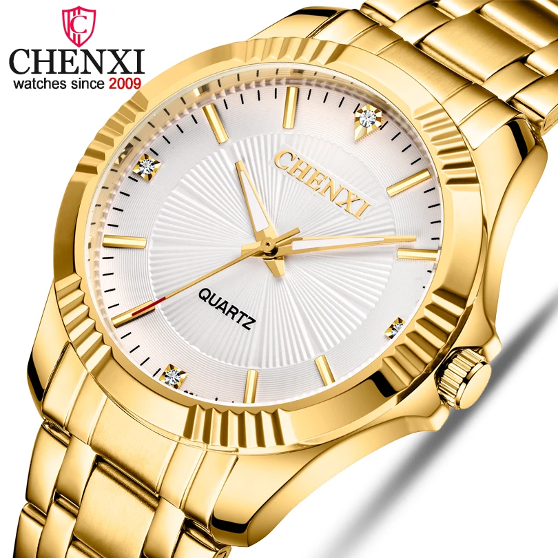 Часы CHENXI золотые мужские, Роскошные, деловые, водонепроницаемые, модные, повседневные, кварцевые, мужские, под платье, наручные часы в подарок