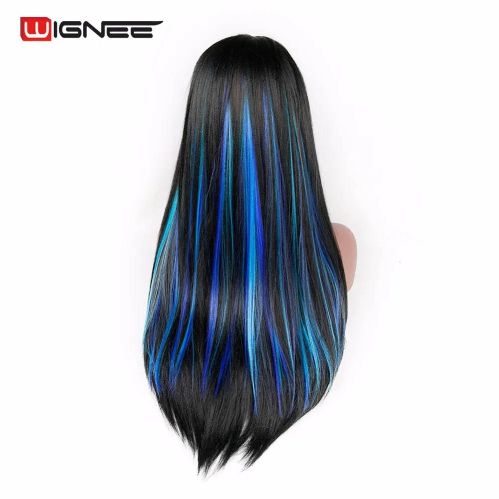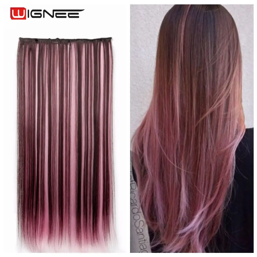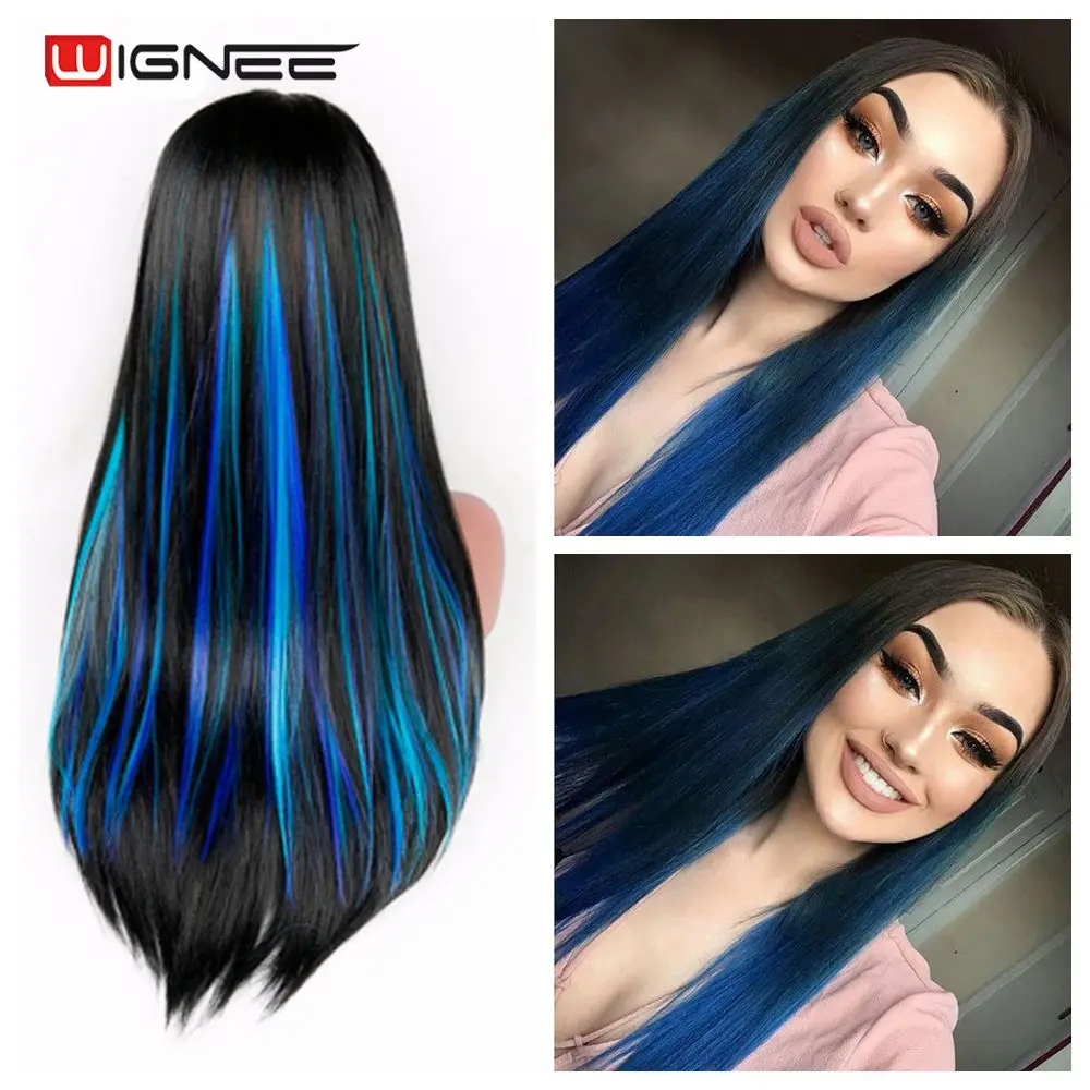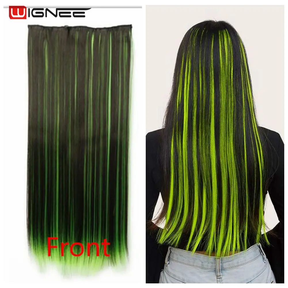 Wignee в одной части, синтетические волосы для наращивания, высокотемпературные смешанные зеленыесиниерозовые натуральные волосы для женщин, парики на каждый день
