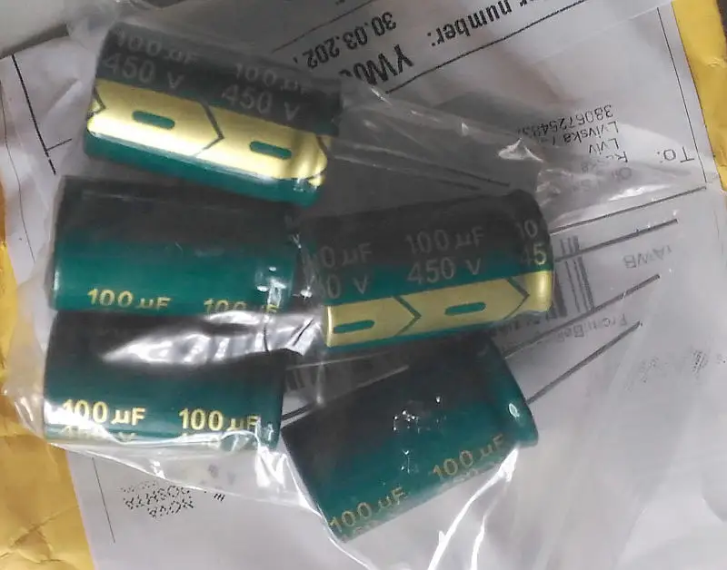 Алюминиевые электролитические конденсаторы 450 в 100 мкФ, размер 18*30, добирались до Ульяновской области два месяца. Соответствуют описанию. Aluminum electrolytic capacitors 450 v 100 UF, size 18*30, reached the Ulyanovsk region for two months. Match the description.