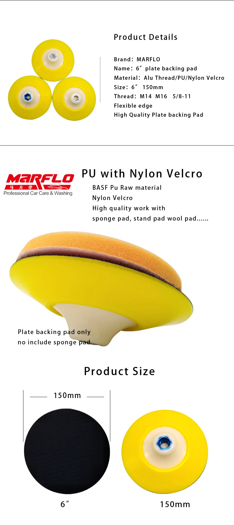 Полировальная подложка Marflo, гибкая подложка с полировальной губкой, резьба 6 дюймов M14 M16 58-11