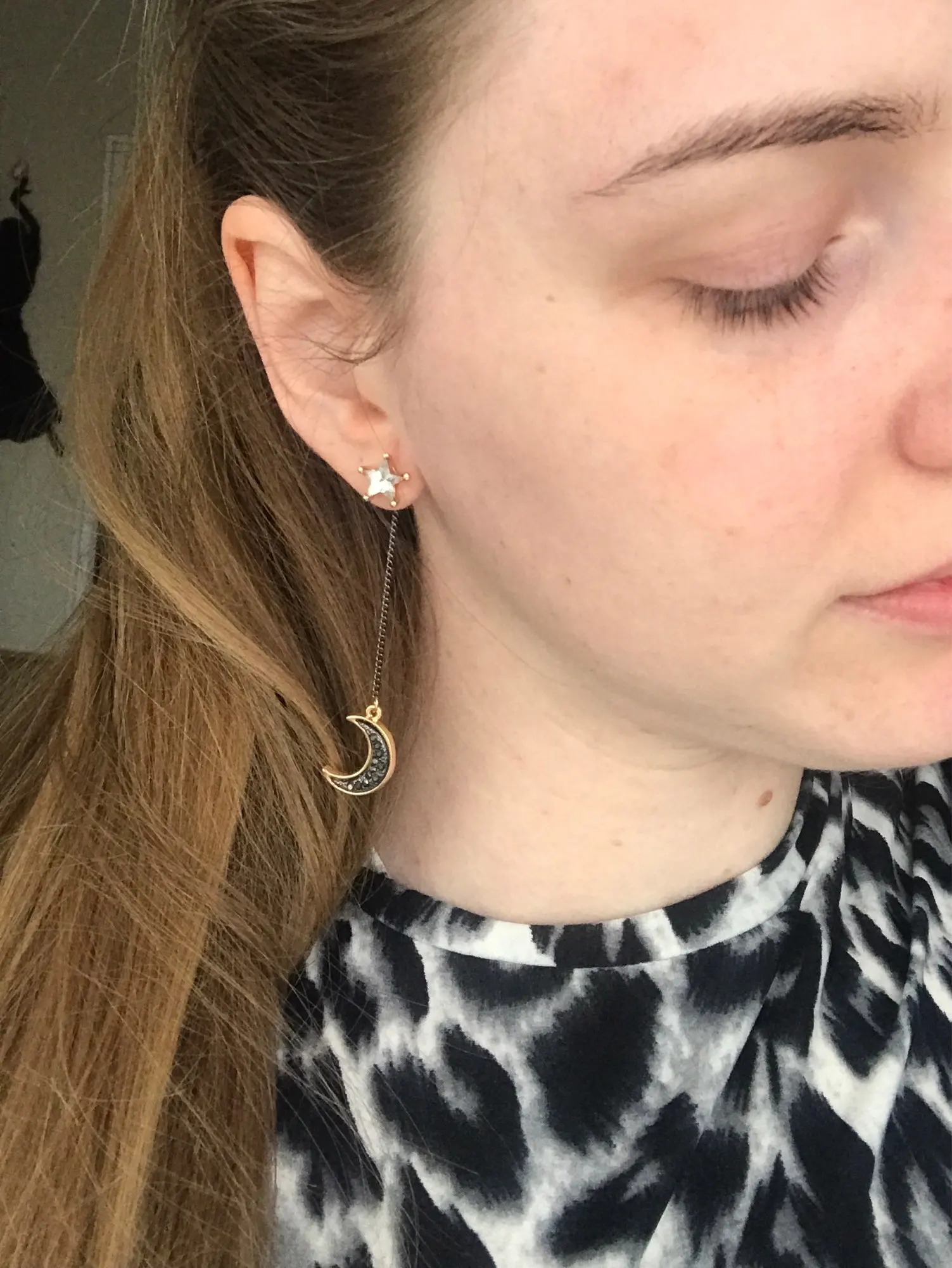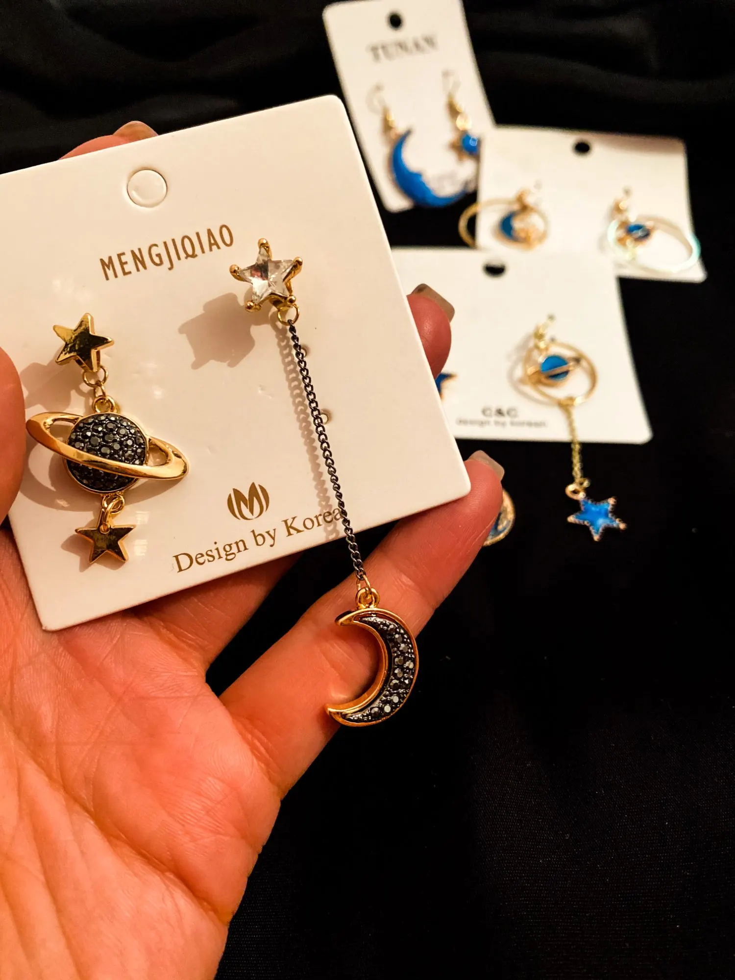 Серьги женские, асимметричные, с Луной, звездой, планетой, Модная бижутерия