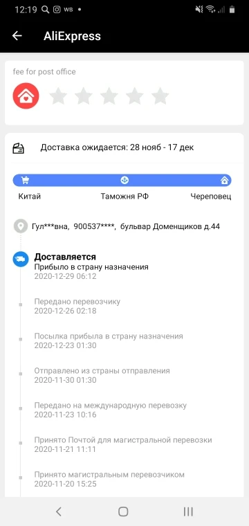 Страна: BE Доставка: Cainiao Super Economy 07.01.2021