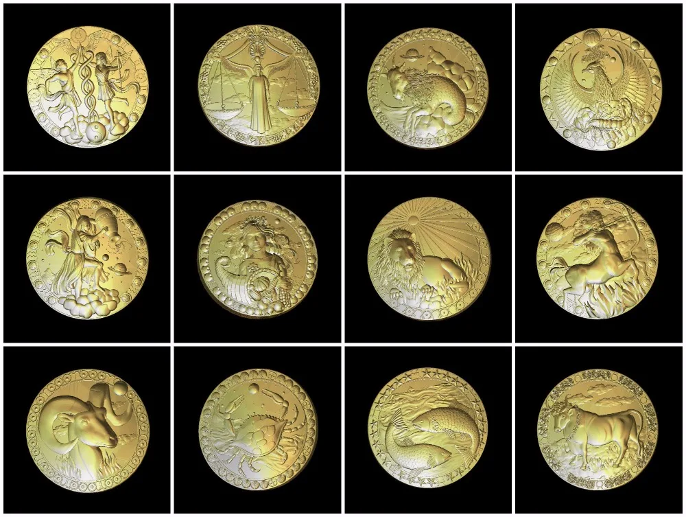 12 знаков зодиака ЧПУ Stl-файл 3d vectric aspire cut3d artcam модель часов для резьбы на ЧПУ (ES)