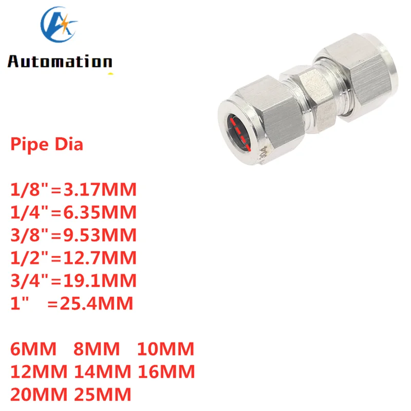 Переходник для трубы 3, 4, 6, 8, 10, 12 мм, 18, 14, 38, 12 дюйма, OD, 304 SS, нержавеющая сталь, двойной наконечник, соединитель, адаптер