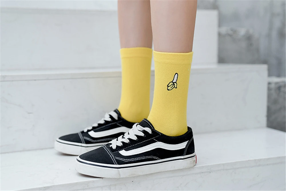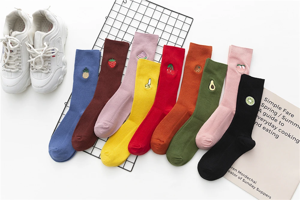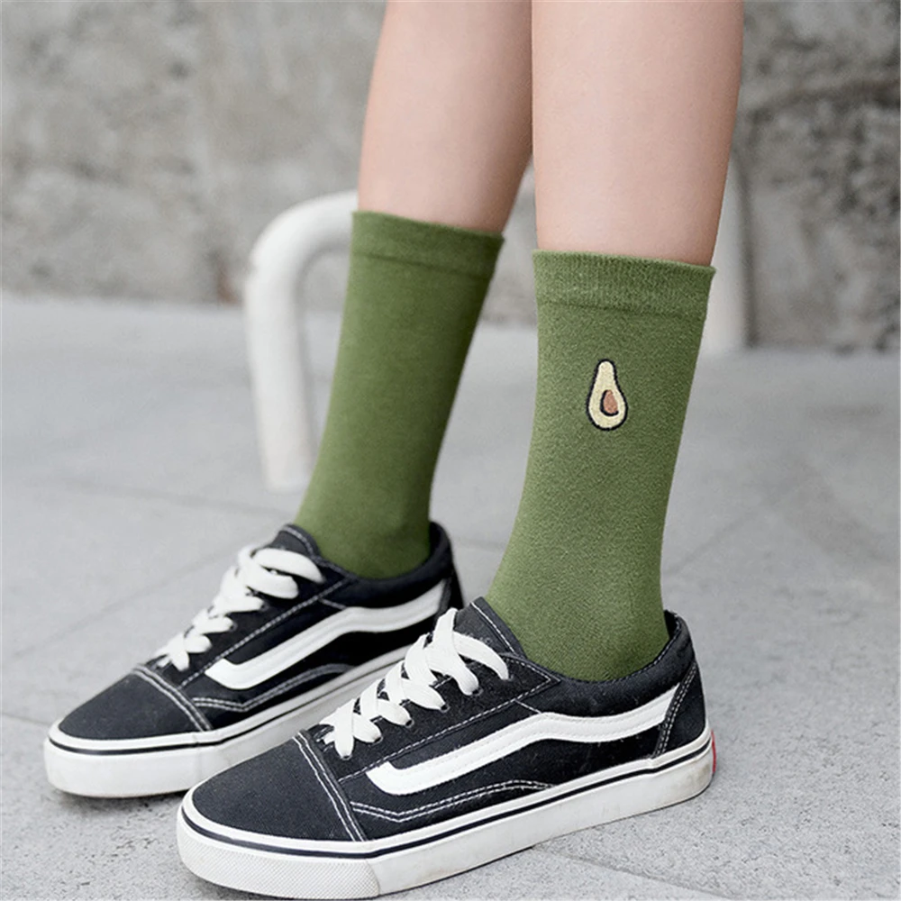 Милые Мультяшные принты с фруктами, авокадо, банан, вишня, персик, девушки, дневные копии, корейские смешные носки с вышивкой в стиле Харадзюку
