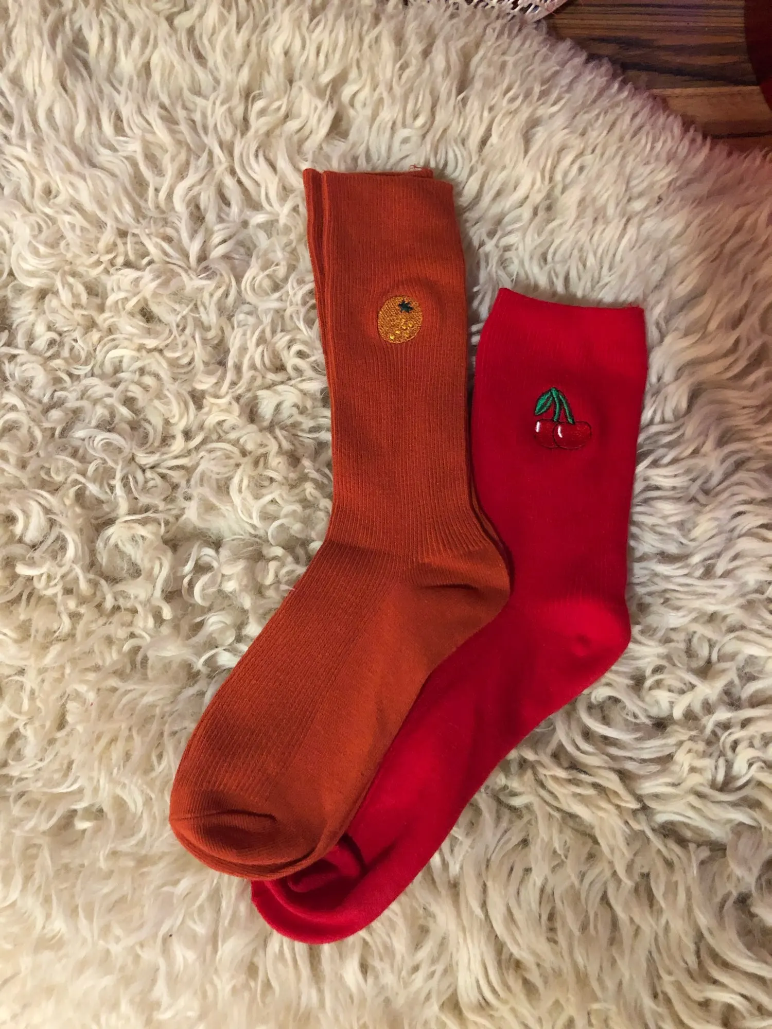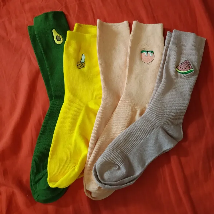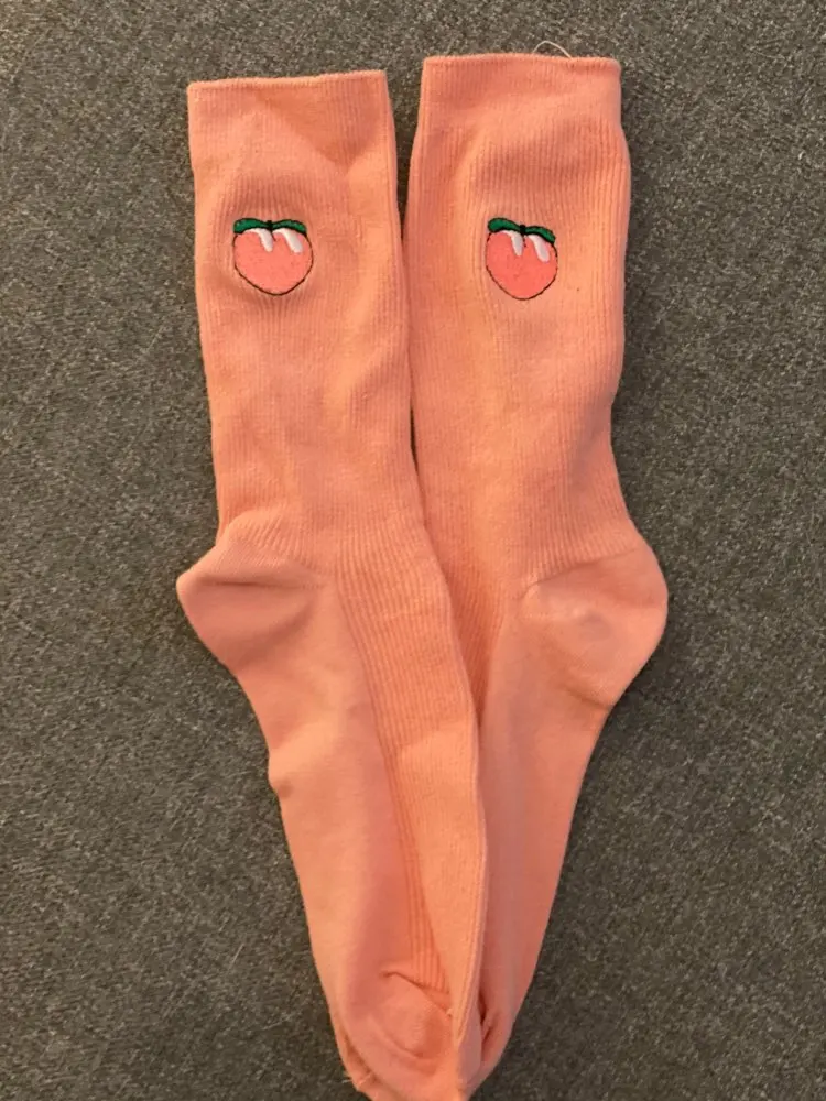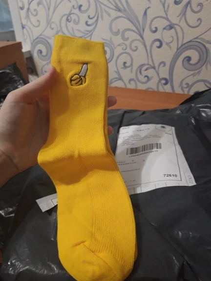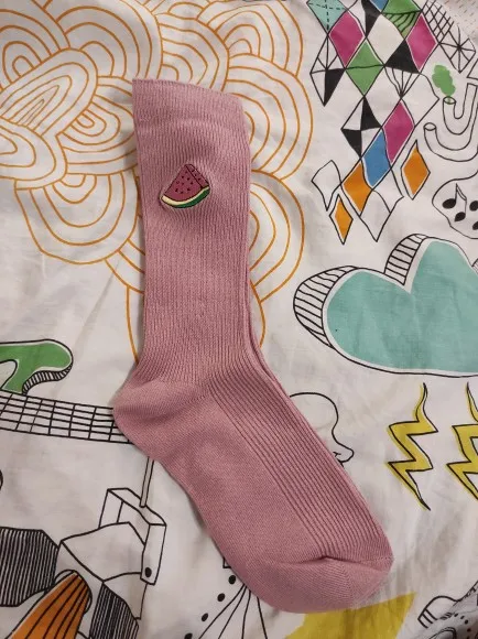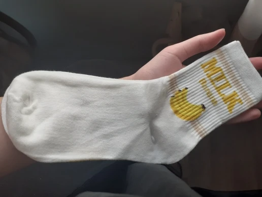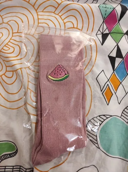 Просто шикарные носки, теперь одни из любимых! Качество на высоте, удобные и красивые :3 теперь у меня есть носки с моим любимым фруктом, я добилась чего-то в жизни