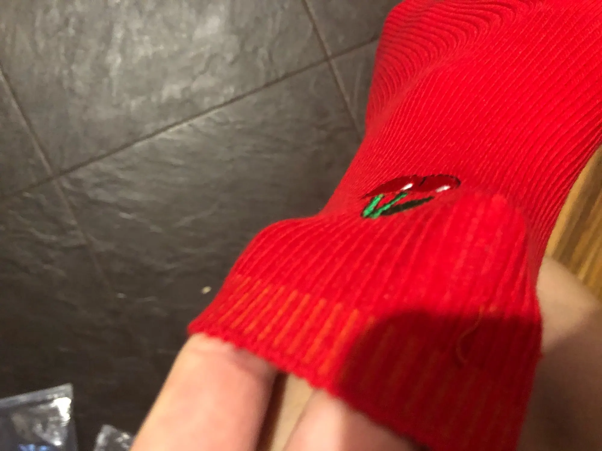 Отличные носки. Пришли за 3-4 недели. Белые с бананом высокие, и сверху ткань плотнее, чем у стопы. Поэтому в них теплее, чем в красных. Цвет и рисунок чёткие, как на фото продавца. Только вот на правом носке рисунки не совсем по бокам, немного съехали. Но это нужно разглядывать.