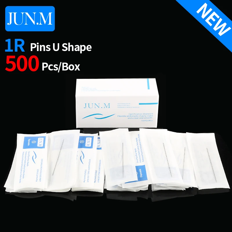 500 шт. 1R одиночные круглые иголки для бровейПодводка для глазгуб Перманентный макияж 0,35*50 мм косметические татуировочные иглы