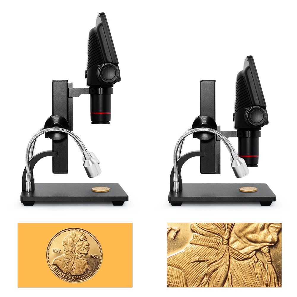 брала для пайки и разглядывания мелкой маркировки на микросхемах. очень удобно работать именно с экраном перед глазами, а не с монитором. увеличение - огонь, видно даже царапины на дорожках. подсветка с двух сторон оказалась удобнее, чем кольцевая на подобных микроскопах другого производителя.