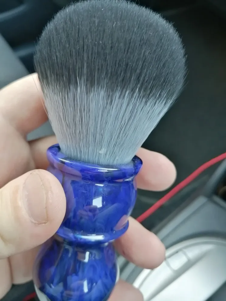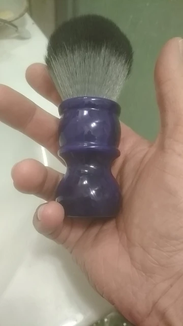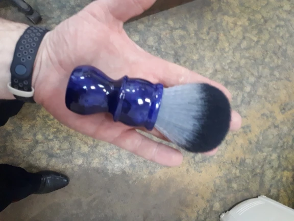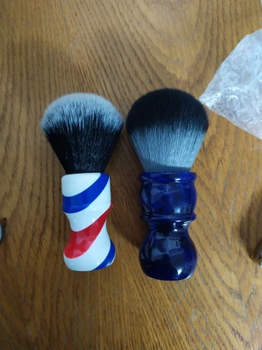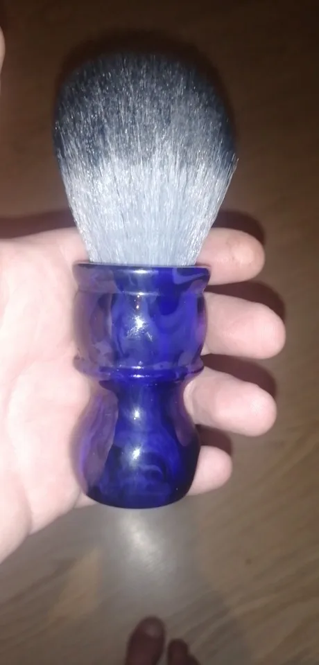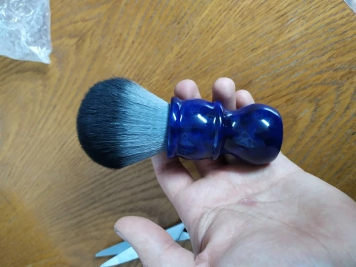 Помазок отличного качества ,доставка с России .Быстрая доставка ,ручка литая искусственная смола ,вес примерно 100грамм ,удобный .Плотная набивка ,со своими обязанностями справляется отлично.Рекомендую понравиться ,приемлемая цена .Высокое качество .