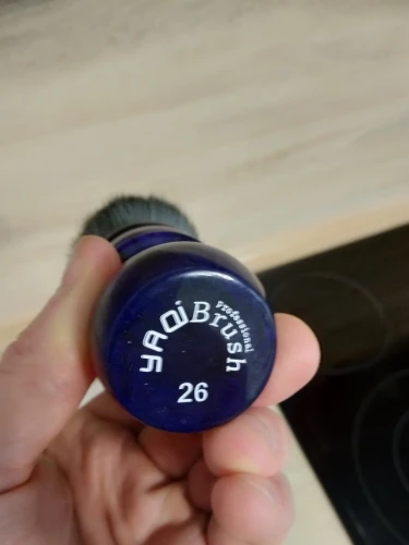 Yaqi Lupo (R1736S2-26) il prodotto è identico a come descritto , buon pennello sintetico ha un nodo diametro di 26mm e un confortevole impugnatura ergonomica , il manico è fatto di resina sintetica e si tiene comodamente in mano, il pennello è fatto di fibre di colore grigio scuro e punte nere.