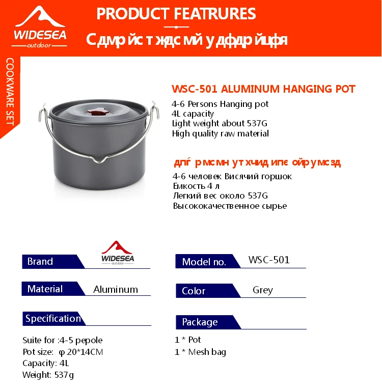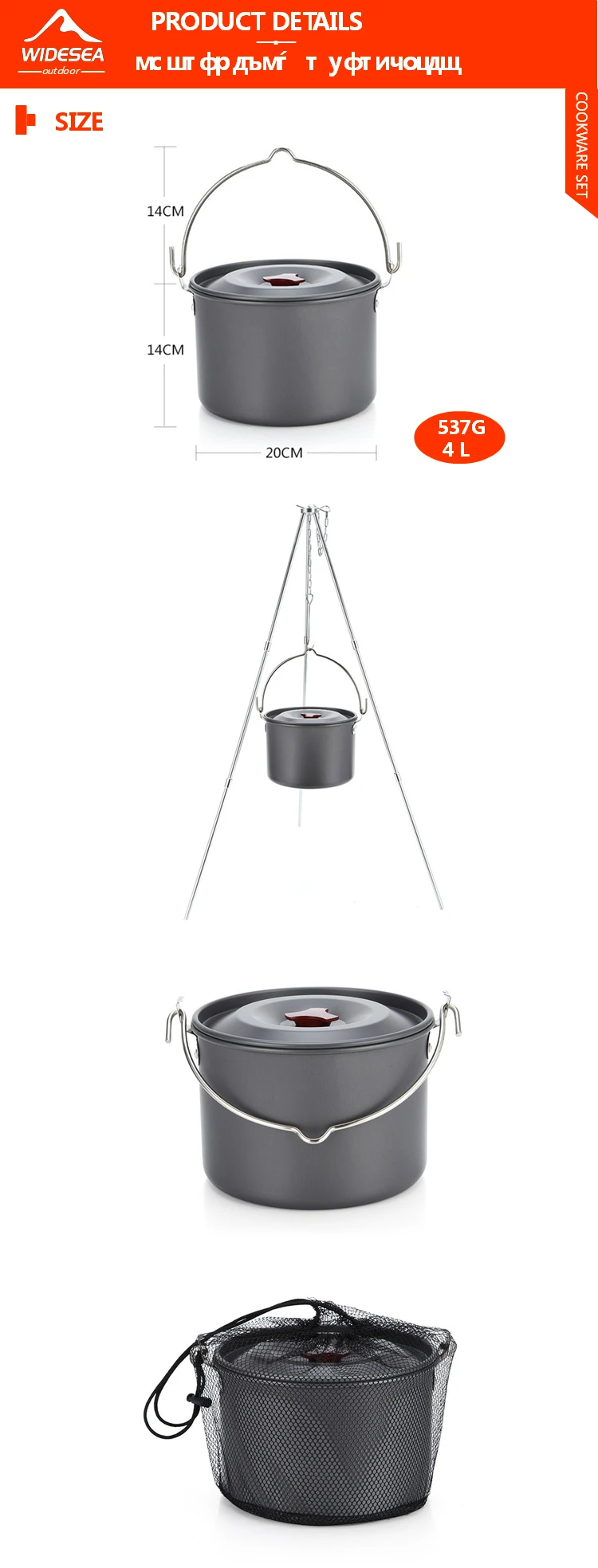 Походный подвесной горшок Widesea 4L, посуда, посуда для открытого воздуха, котелок, посуда для 4-6 человек, для пикника, приготовления пищи, туризма, рыбалки, кухонное оборудование