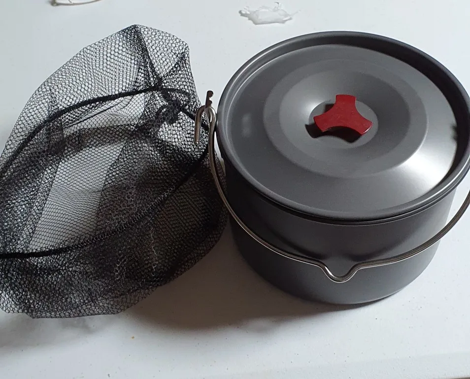 Покупкою задоволений. Казанок як на фото, прийшов в коробці, все ціле. Вага - 534 гр. Об‘єм 4 літри. На фото залив в казанок рівно 4 літри. Ручка фіксується. Для походів саме те, легкий та зручний. Доставка до Дніпра з Китаю зайняла 14 днів.