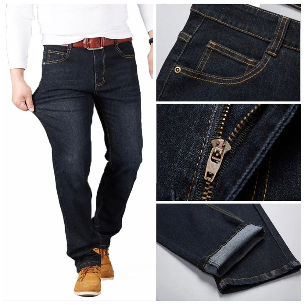 Джинсы мужские высокоэластичные прямые, брюки-багги, Модные Повседневные Классические брюки из денима, деловой стиль, черные, синие, большие размеры 28-50