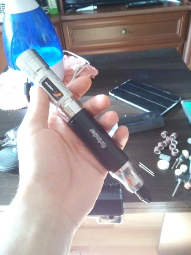 Вообщем заказал товар из России, в итоге отправили из Китая, при этом пообещали хороший подарок - под их пониманием "хороший подарок" пришла самая, что ни есть дешёвая подставка для телефона, стоимостью рублей 20. Акб пришёл всего один, насадки лажа полная, патрон пришёл кривой, да ещё и заедает. Что касается устройства, двигатель вообще до безумия слабый, очень слабый, от прикосновения рукой останавливается, толку от него не будет ни какого, дома имеется самый дешёвый дремель (ещё меньшего размера раза в 3,покупал за 400 рублей на этом же али) с регулятором и блоком питания, так он и то на много мощнее этой дряни. Вообщем вы решайте сами, нужно вам это говно за такие приличные деньги или нет, но я вам не советую