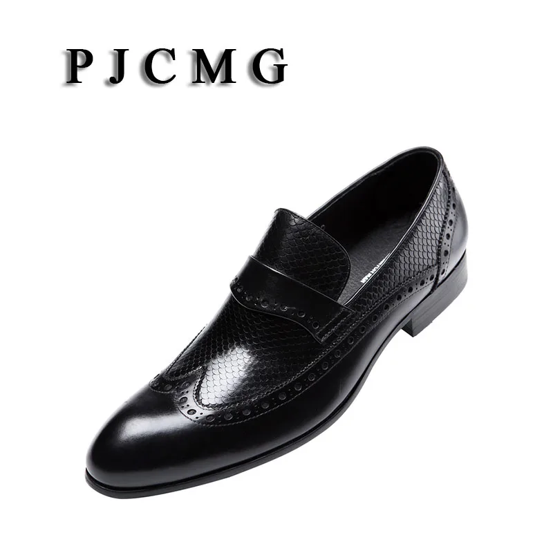 Мужские свадебные туфли-оксфорды PJCMG, черныекоричневые офисные туфли из натуральной кожи без застежек, с острым носком, размеры 38-44