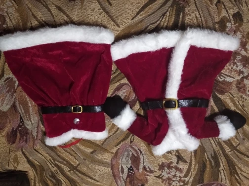 Интересный костюмчик для бутылки. Качество хорошее: ткань бархатная, опушка плюшевая какая-то, швы ровныеЗаказала к Новому году. Но, к сожалению, пришел поздно Но, ничего, в следующем году будет украшать новогодний стол