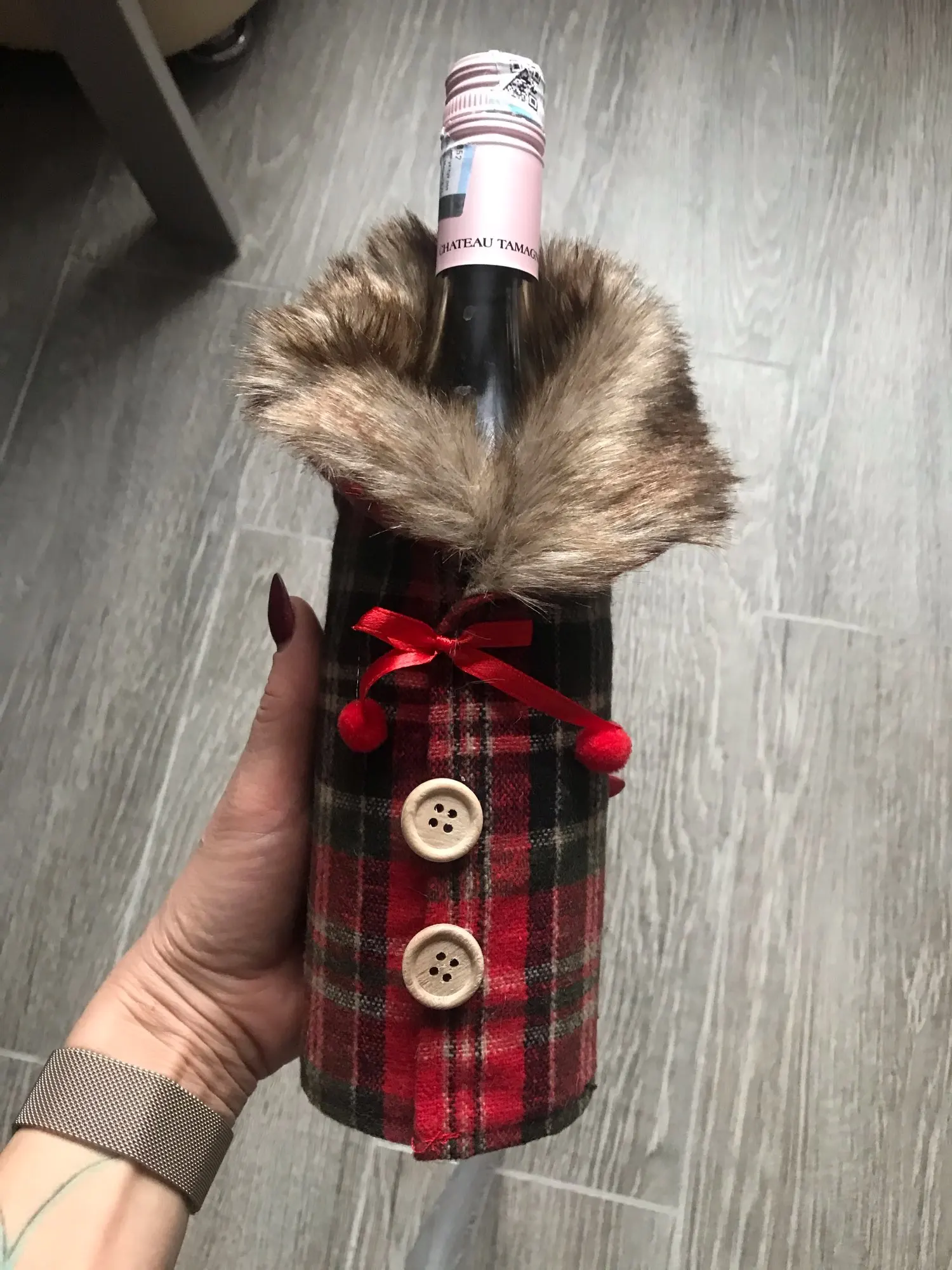 Подойдёт только на бутылку вина, на шампанское наврядли налезет. Но в целом красиво сшито, станет приятным дополнениям праздничного стола. Рекомендую!