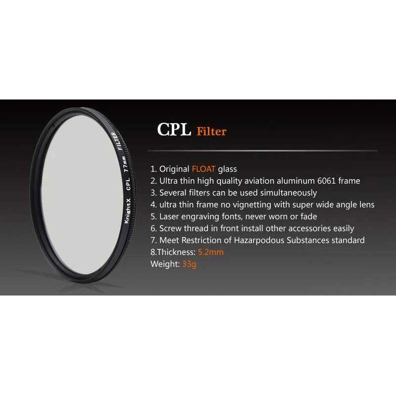 Поляризационный фильтр KnightX CPL 49 52 55 58 62 67 72 77 мм для камер Sony Canon Nikon d5300 600d d3200 52 мм 58 мм