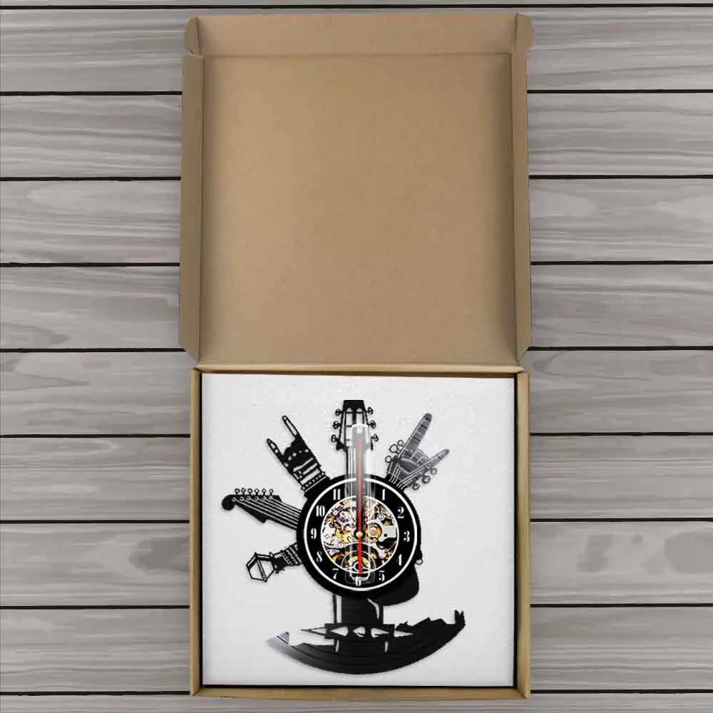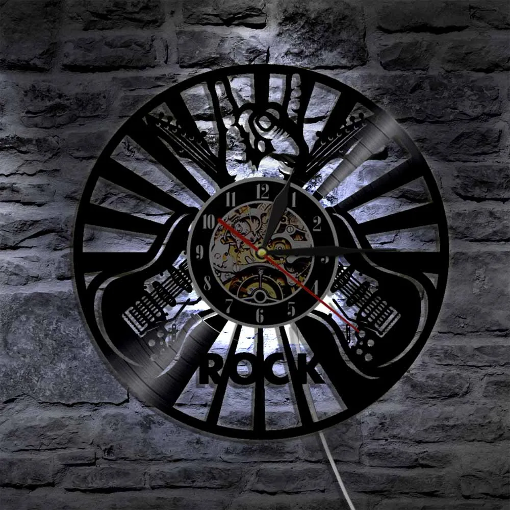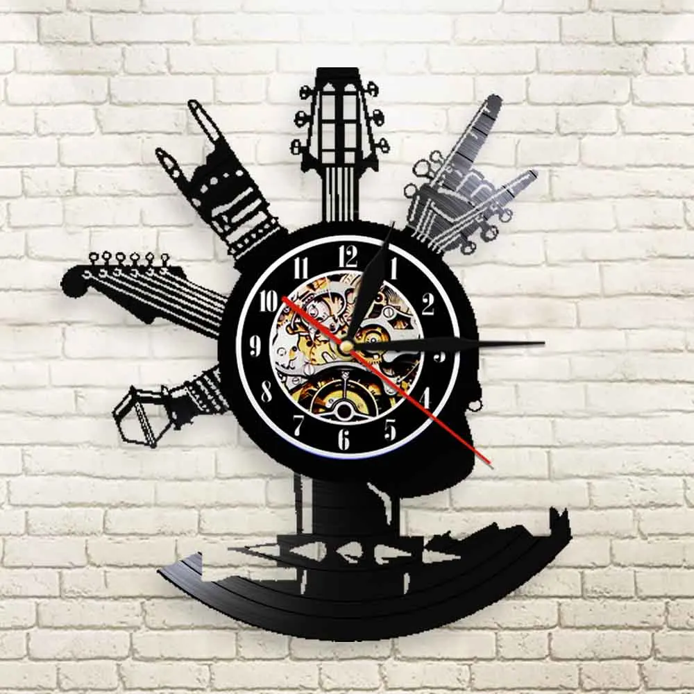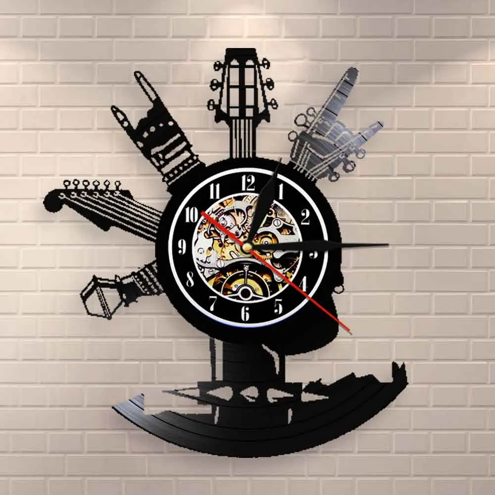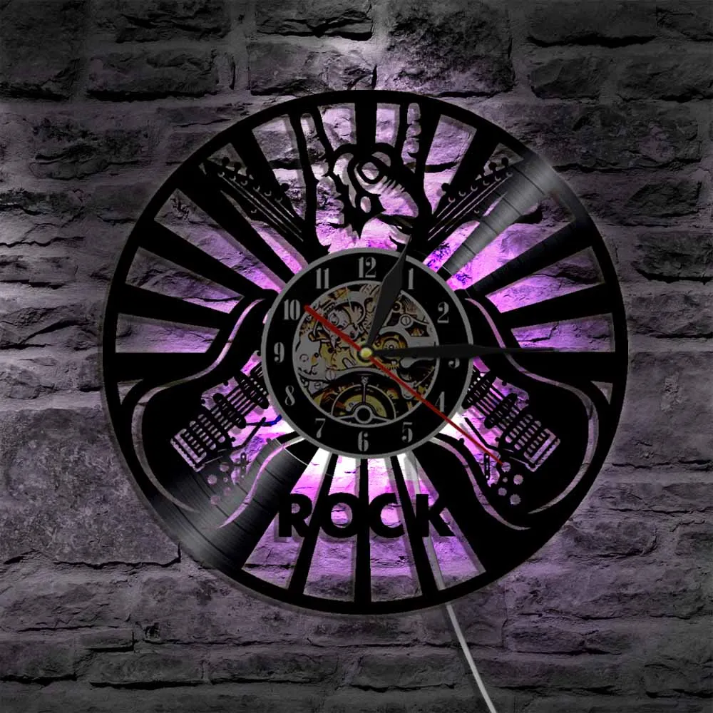 Настенные часы с изображением гитары, Виниловая пластинка, украшение для дома, рулон с Н-роллом, музыкальный диск, настенные часы, рок-группа, подарок гитаристу