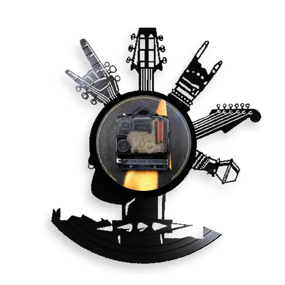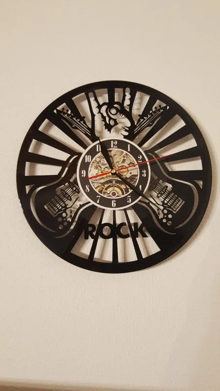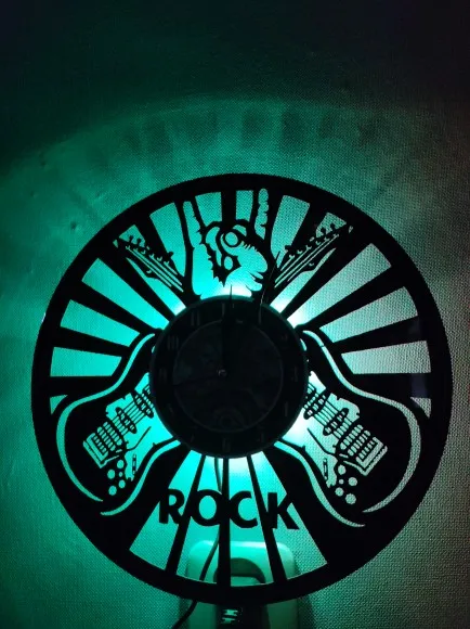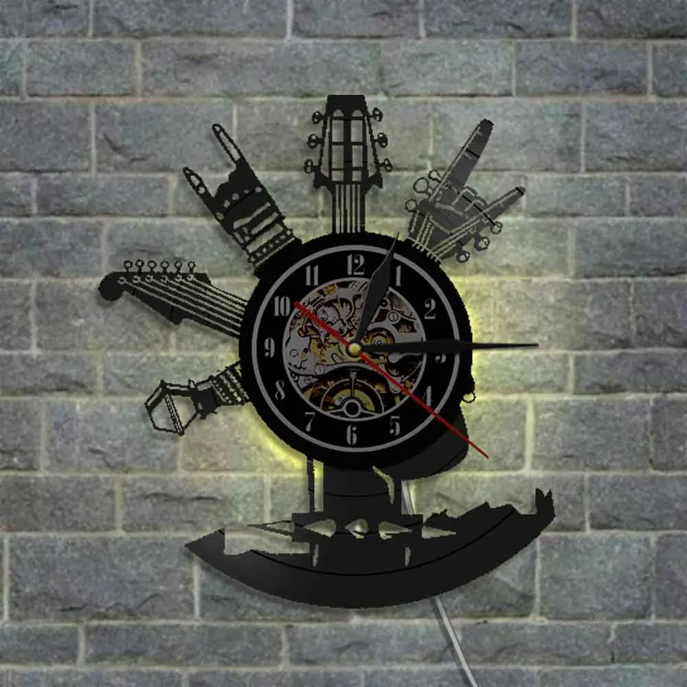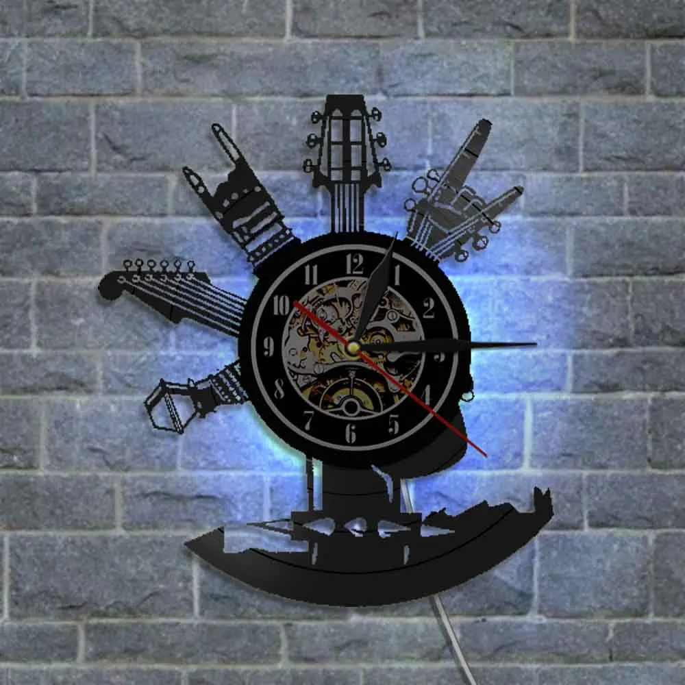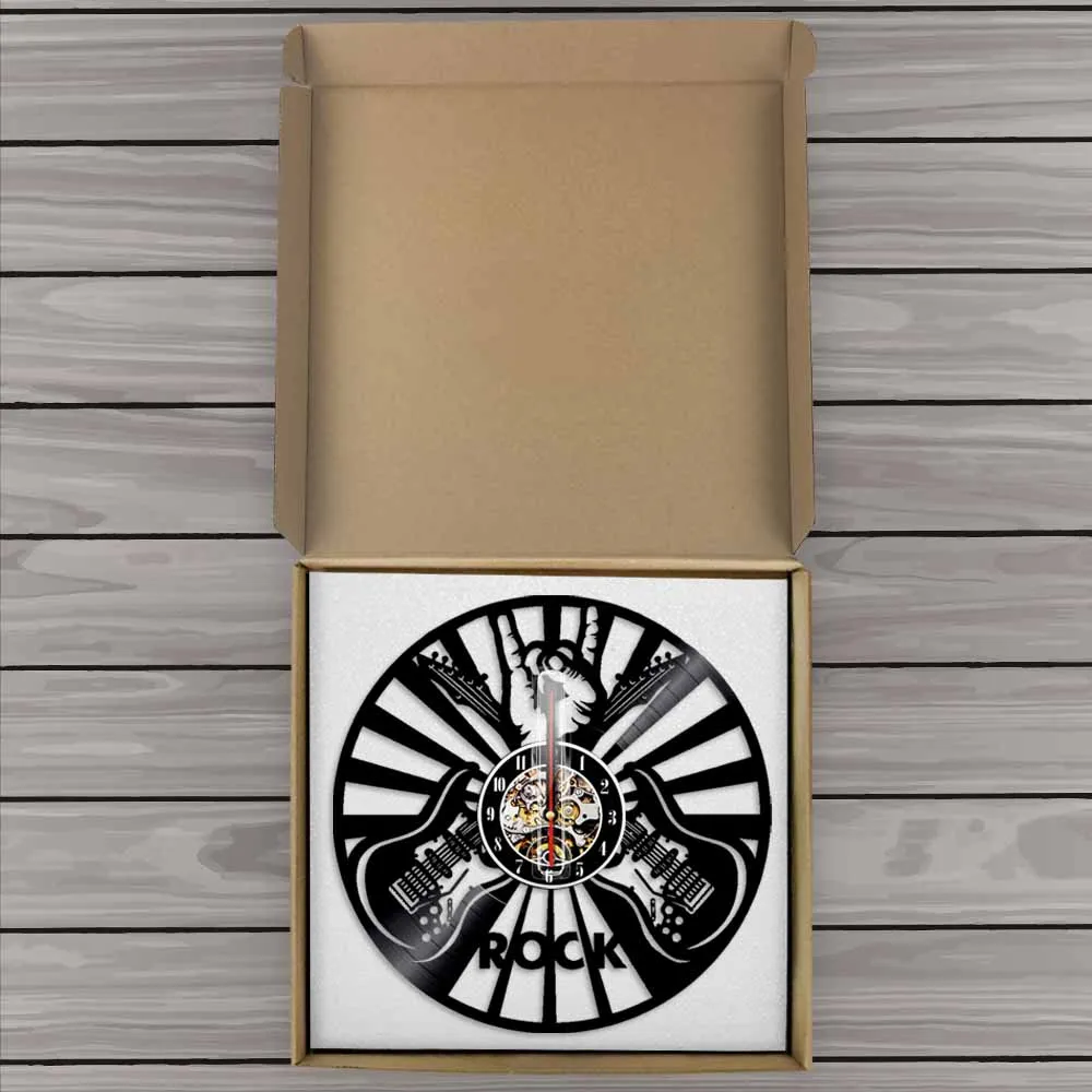 Настенные часы с изображением гитары, Виниловая пластинка, украшение для дома, рулон с Н-роллом, музыкальный диск, настенные часы, рок-группа, подарок гитаристу