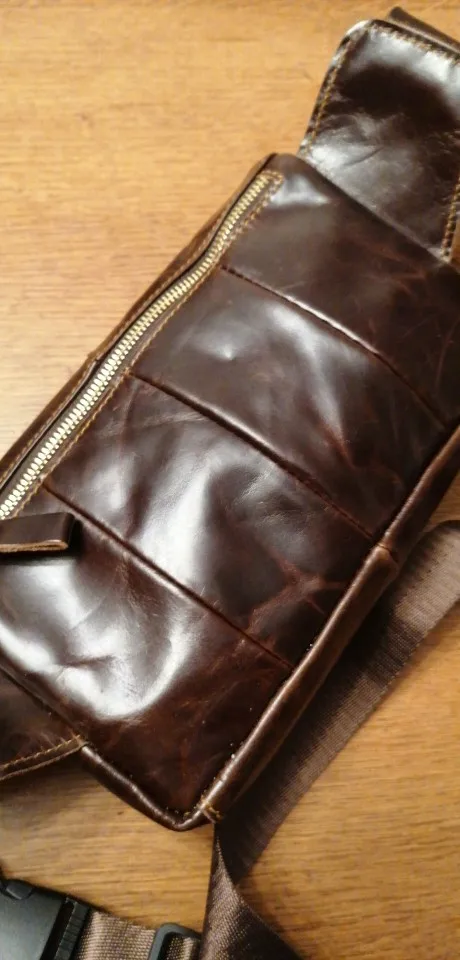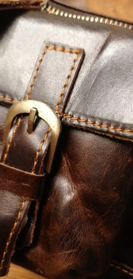 Кожаная сумка точно как в описании пришла по почте через месяц в слегка помятом состоянии. Набила её наполнителем из бумаги, помяла немного и нужная форма восстановилась. Покупкой довольна, спасибо продавцу!