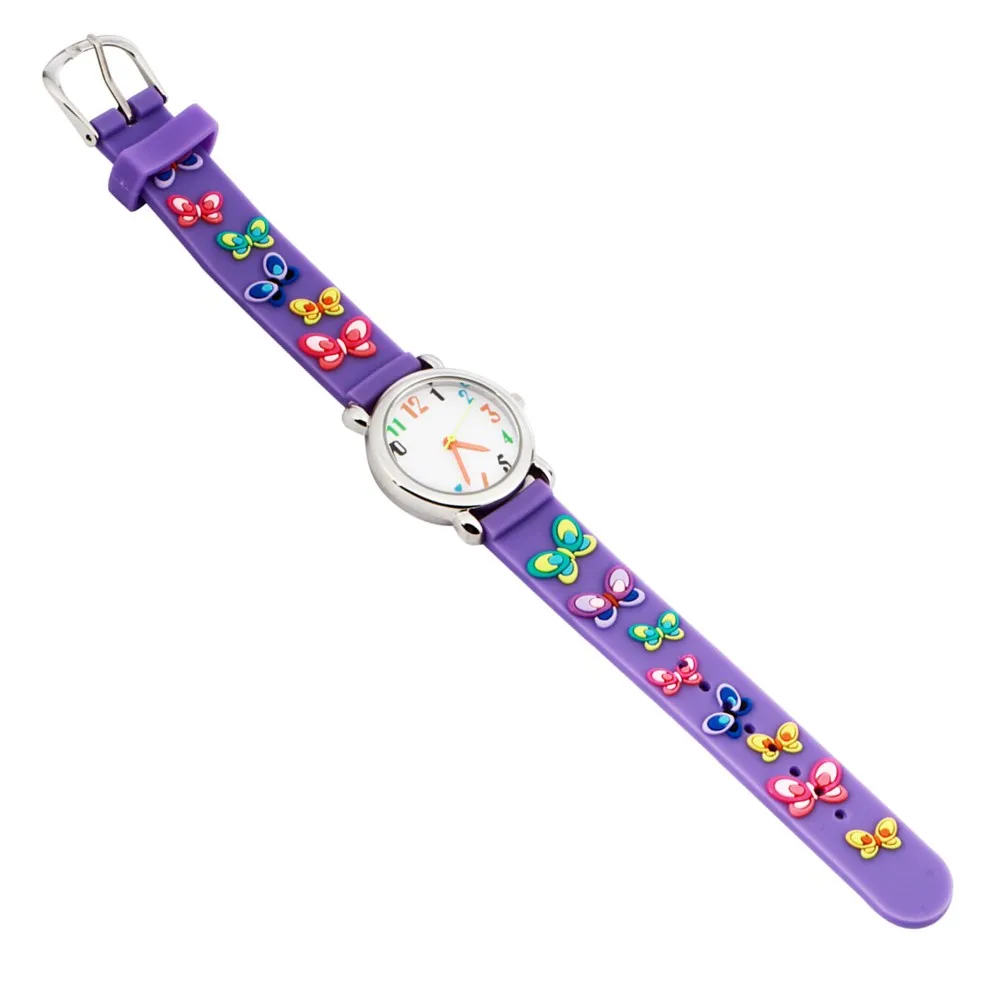 Детские наручные часы с бабочкой, водонепроницаемые, с силиконовым браслетом