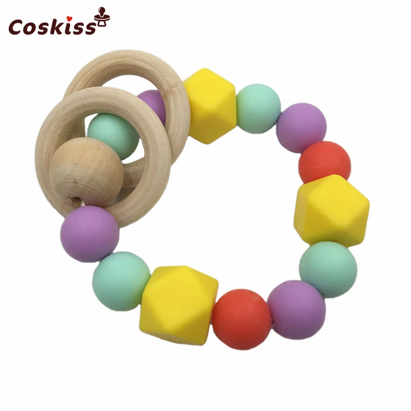 Детский Прорезыватель для зубов, браслет для ухода, силиконовые бусины, деревянное кольцо, деревянные бусины, Прорезыватель для зубов, органические детские игрушки для прорезывателя для зубов