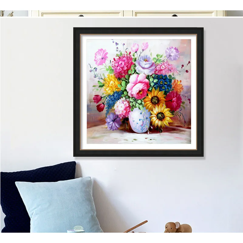 Цветастая ваза с подсолнухами DIY кристальная полная дрель квадратн...