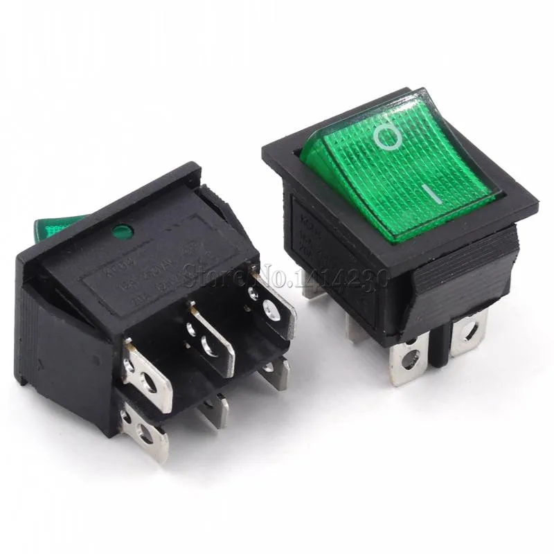 10 шт. KCD4 25x31 мм переключатель с большим кораблем, зеленый 6-контактный 2-позиционный переключатель SPST 16 А 250 В 20 А В переменного тока, переключатель вкл.выкл. С зеленсветильник